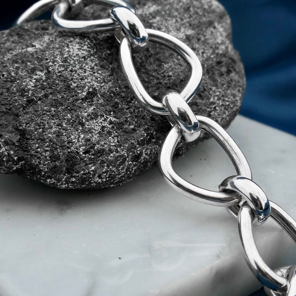 Silver bracelet with a decorative link. The links are robustly crafted with oval inserts. The bracelet is made of premium silver (925/1000).