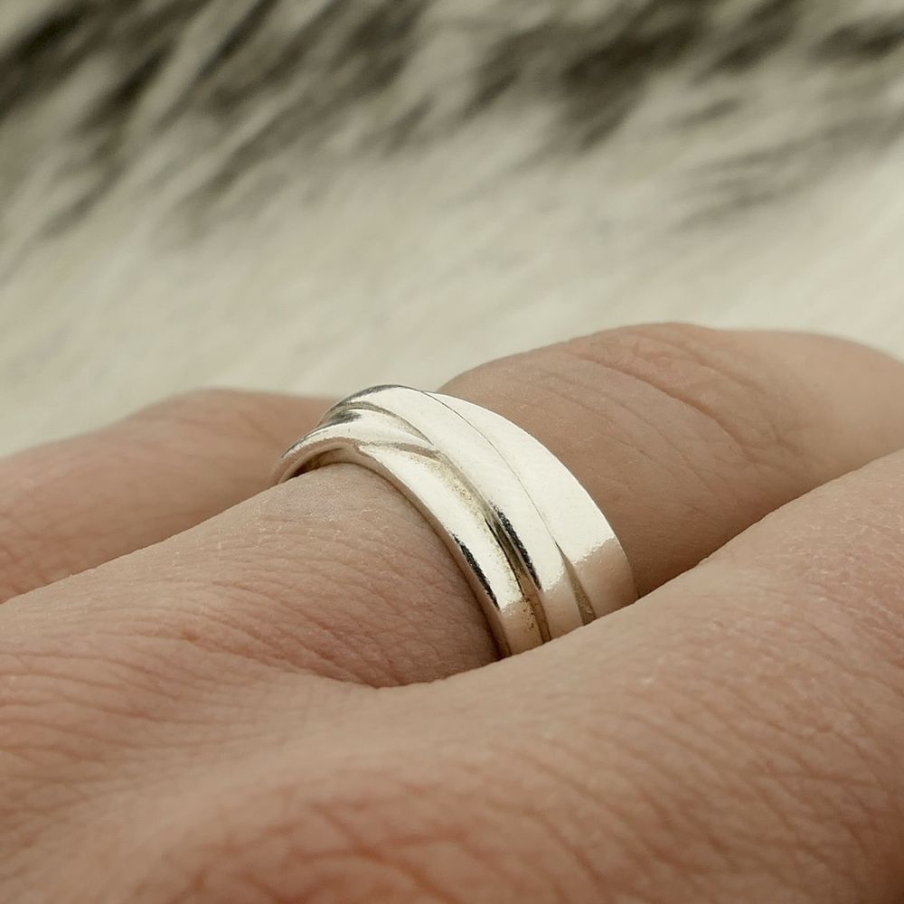 Silver women's ring with a fantasy design. The ring consists of three separate rings joined together to form a single ring. The piece is made of 925/1000 sterling silver.