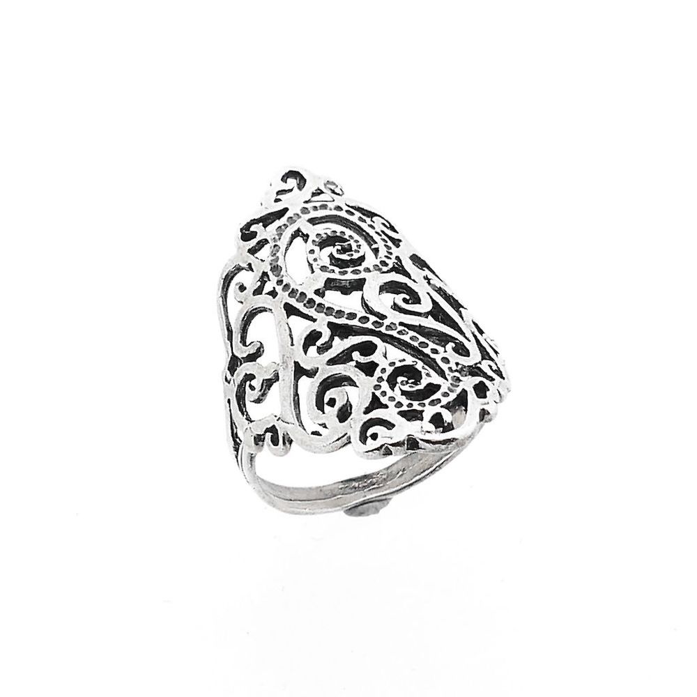 Silver ladies' ring with an ornate filigree design. The ring has a Victorian style and is made of first-grade silver (925/1000).