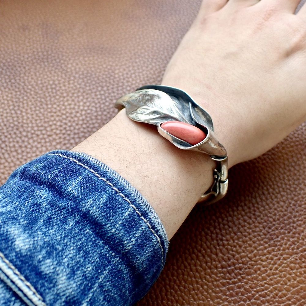 Silver floral fantasy bracelet with blood coral | Ø 54 mm