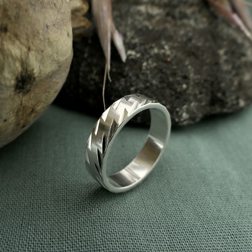 Silver women's ring with a diagonal relief. The ring is made of first-grade silver (925/1000).