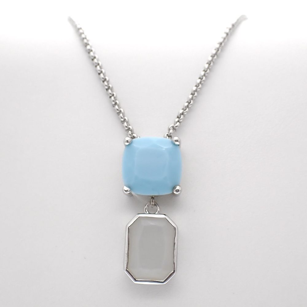 Silver necklace with turquoise and milkstone pendant; 40-45 cm