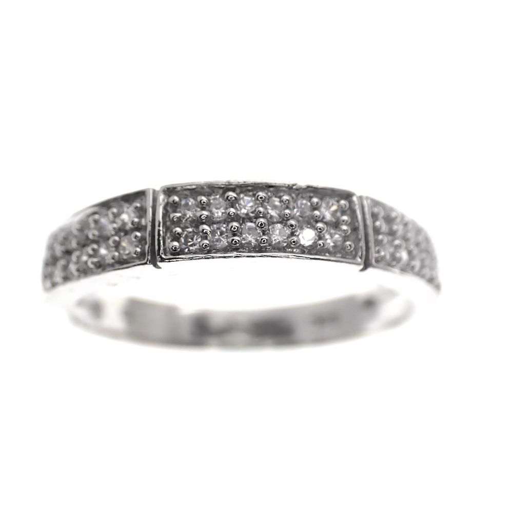 Silver ring pavé-set with sparkling cubic zirconia. A modern design with the beautiful sparkle of the cubic zirconia. The ring is made of premium silver (925/1000).