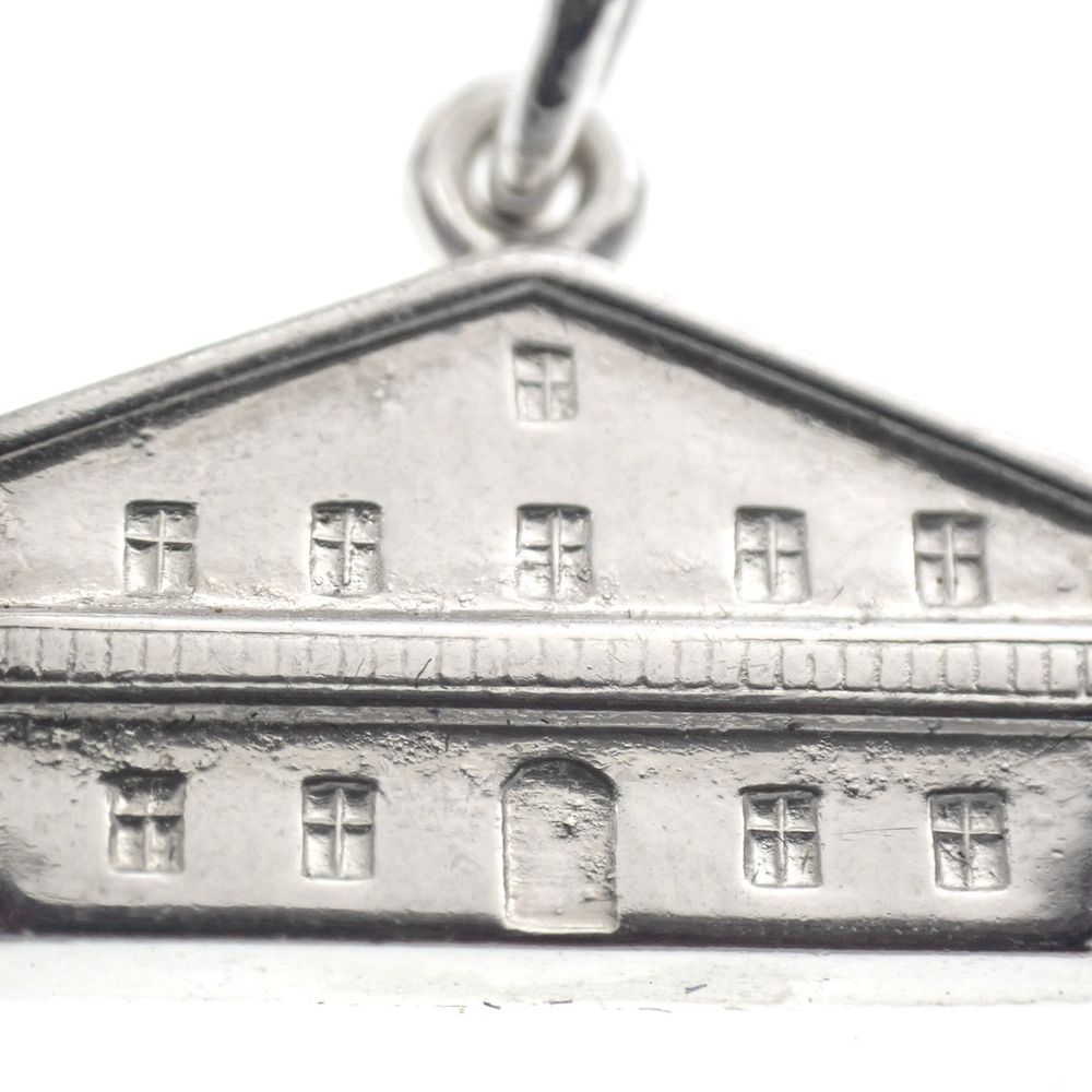 Silver pendant designed as a building. The pendant is made of first-grade silver (925/1000) and is hallmarked with the Dutch hallmark.