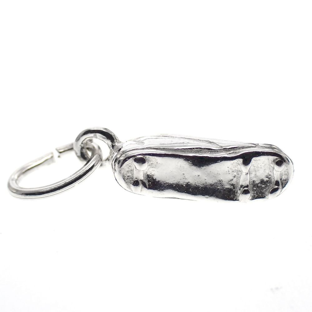 Silver pendant of a golf shoe. The pendant is made of 925/1000 sterling silver and is hallmarked with the Dutch hallmark.