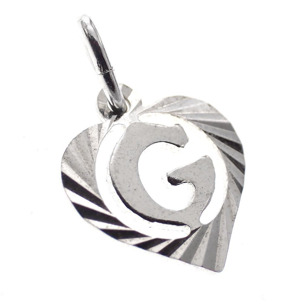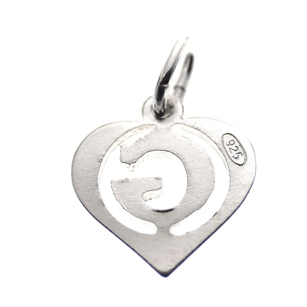 Silver pendant of the letter G surrounded by a heart. The pendant is made of first-grade silver (925/1000) and is hallmarked with the Dutch hallmark.