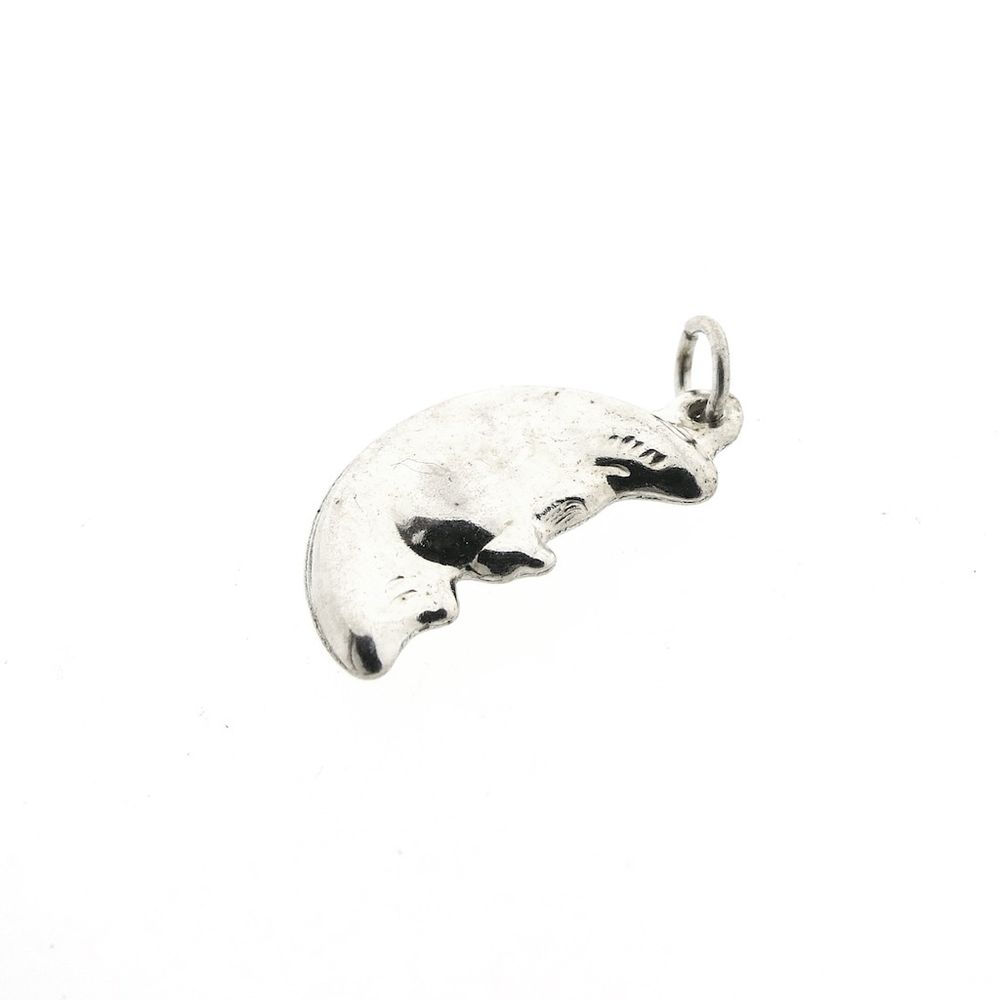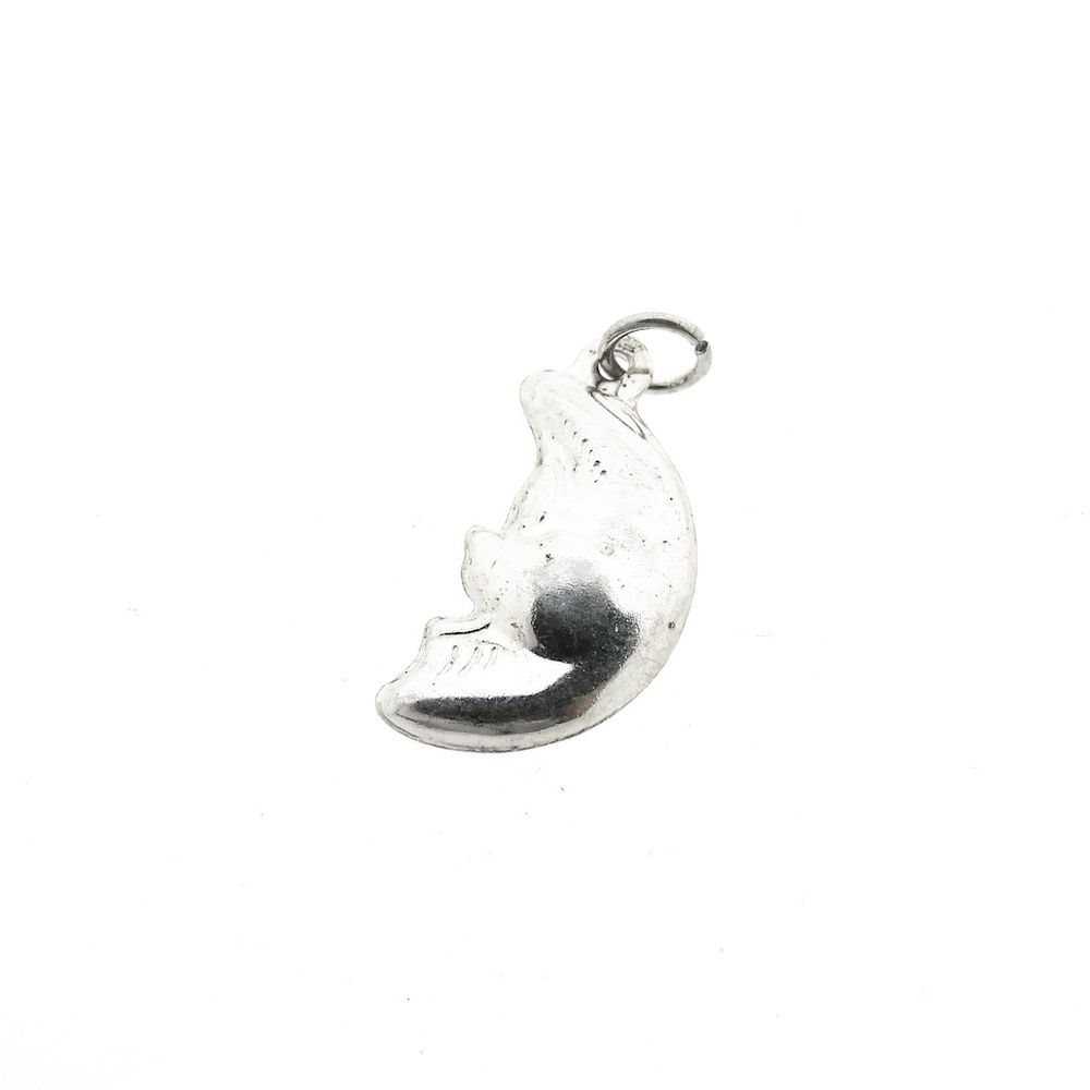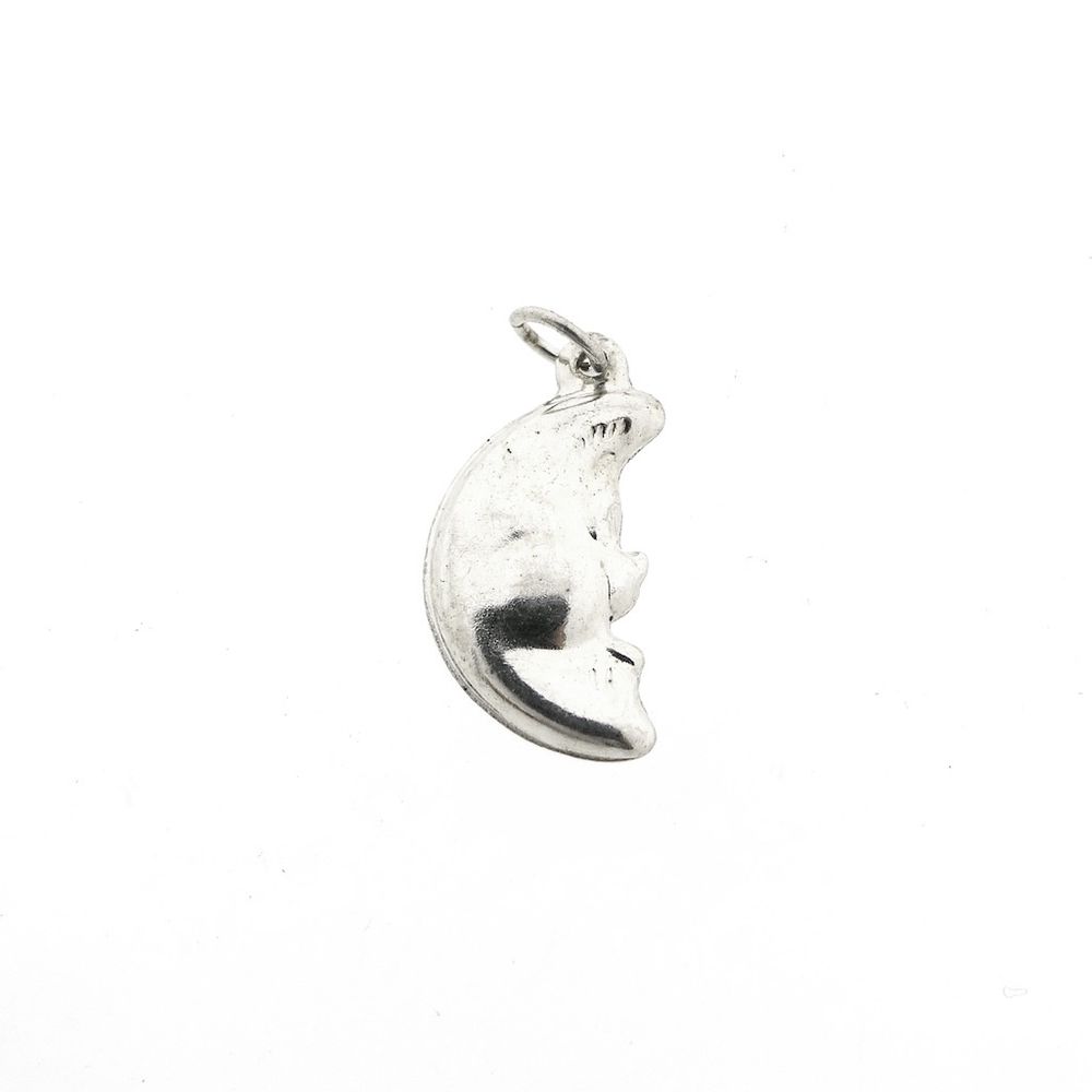 Silver pendant of a moon with a face. The pendant can be used for a charm bracelet or worn as a pendant on a necklace. The piece is made of first-grade silver (925/1000).