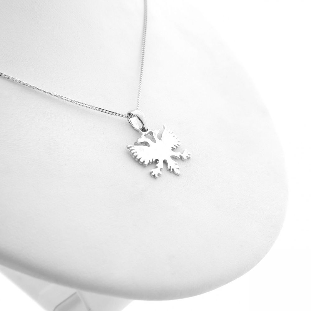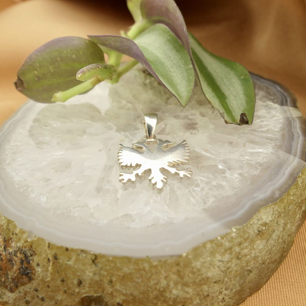 Silver pendant of an Albanian eagle. The piece has a smooth finish and is made of second-grade silver (835/1000).