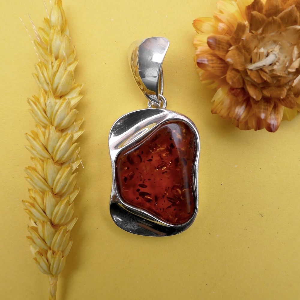 Silver pendant with amber