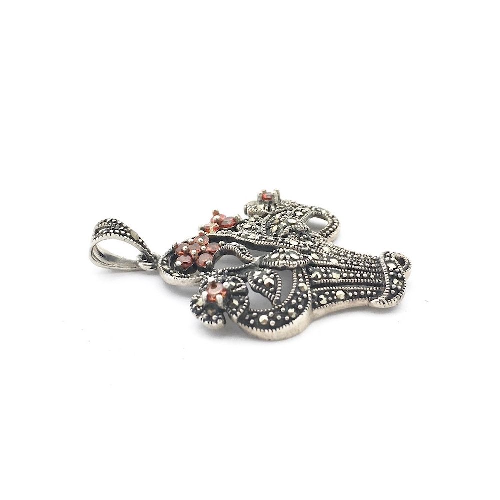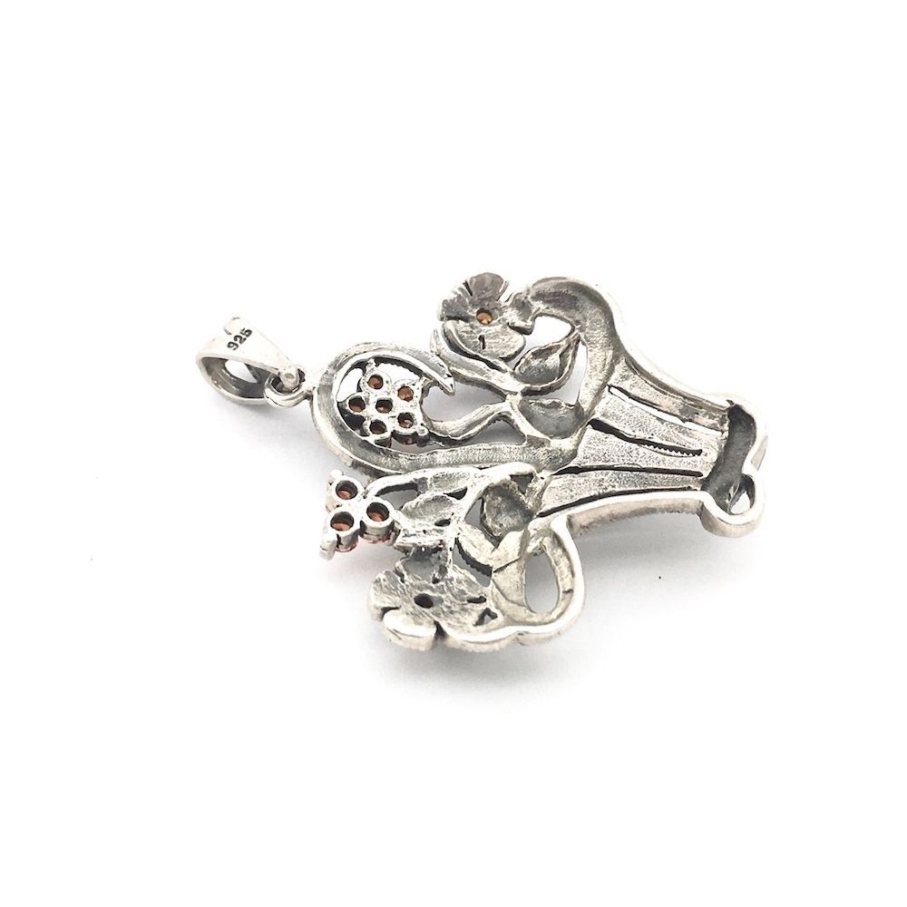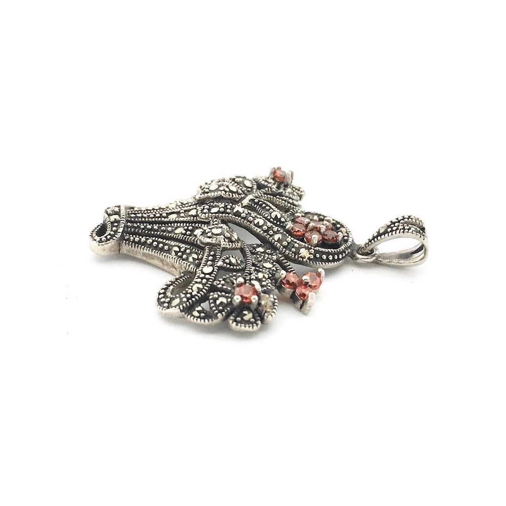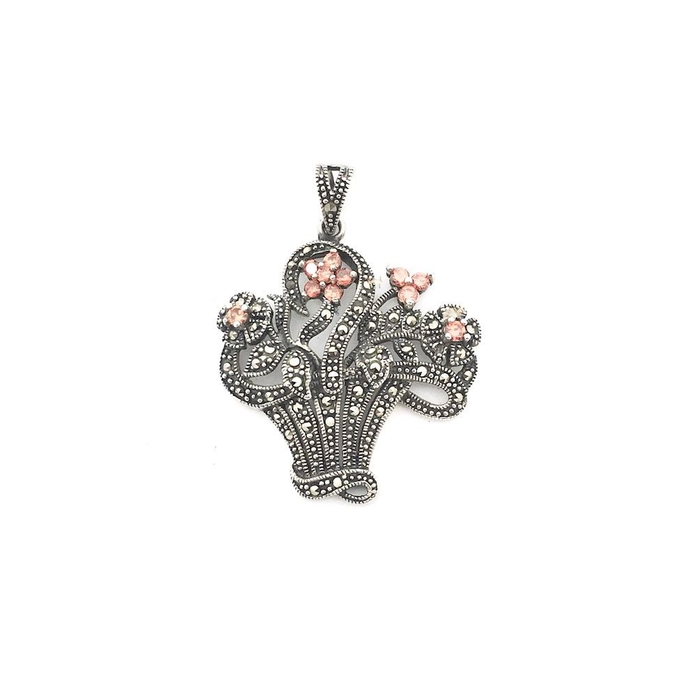 Silver pendant with orange zirconia and marcasite; floral bouquet