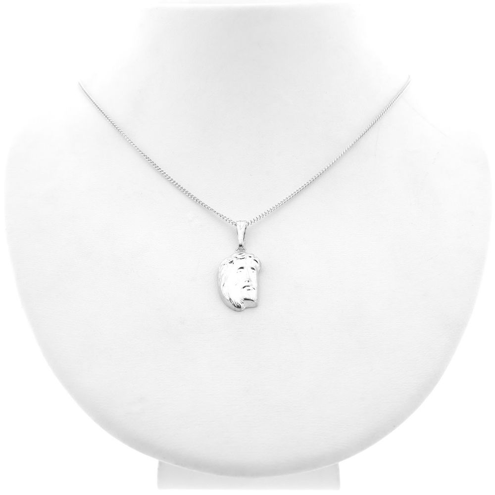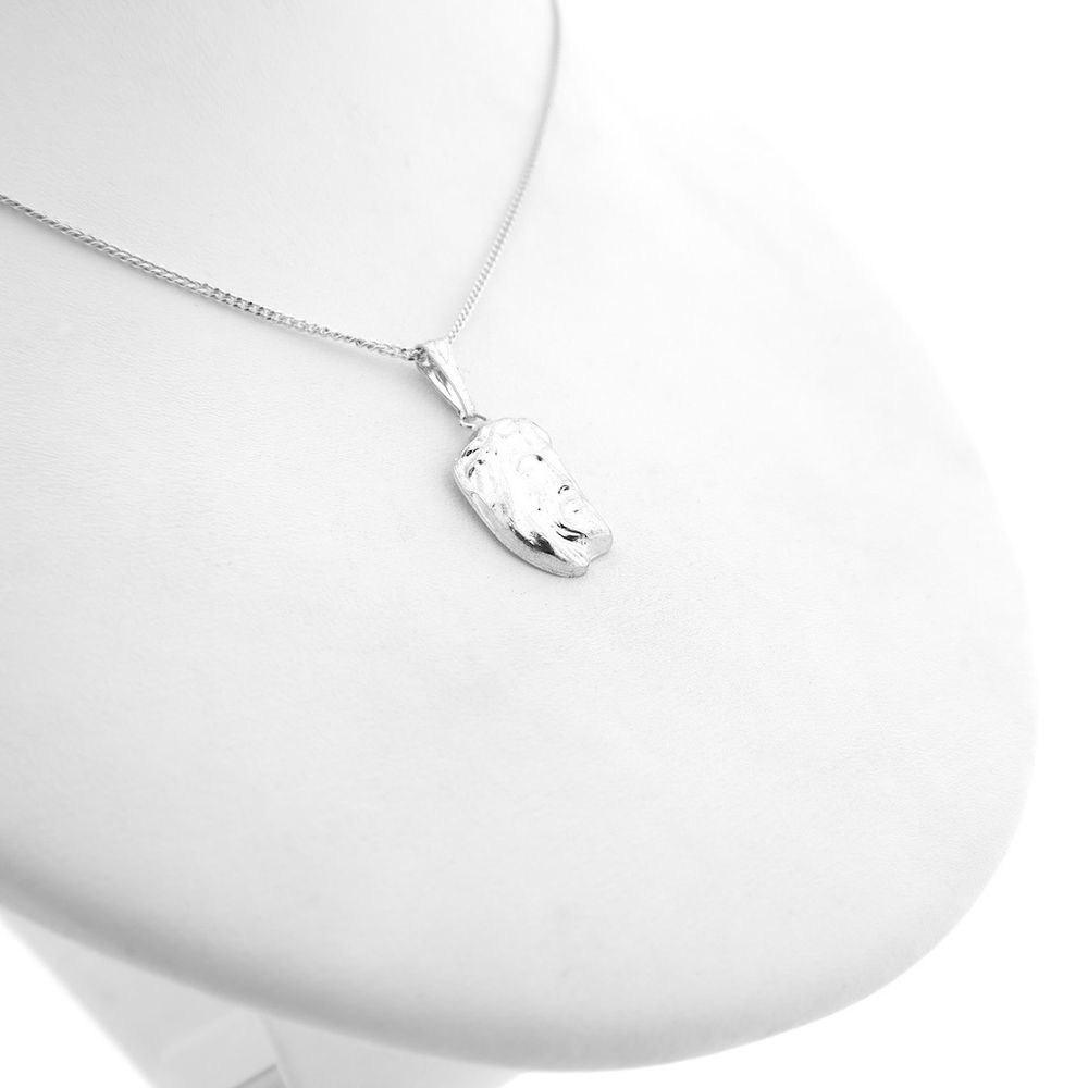 Silver pendant with the face of Jesus. A piece of jewelry with religious significance. The pendant is made of first-grade silver (925/1000).