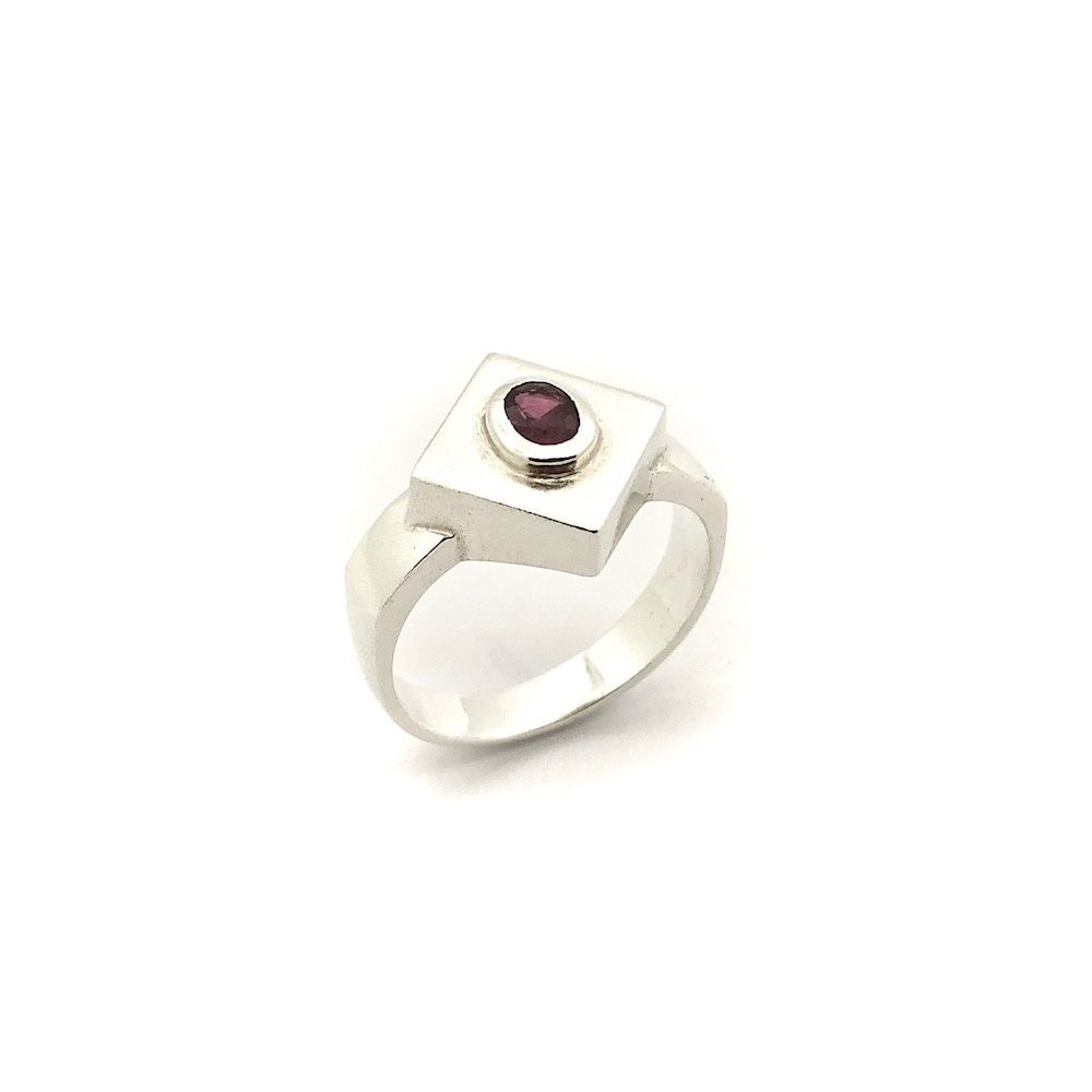 Silver ring with an oval cut amethyst stone