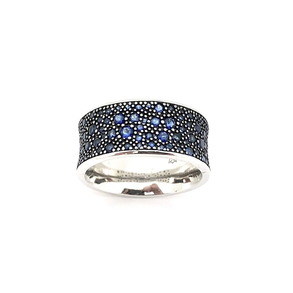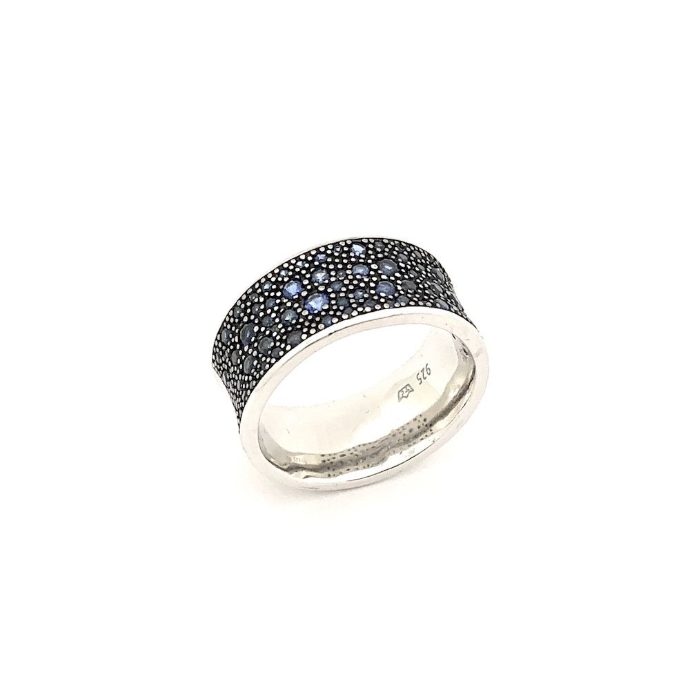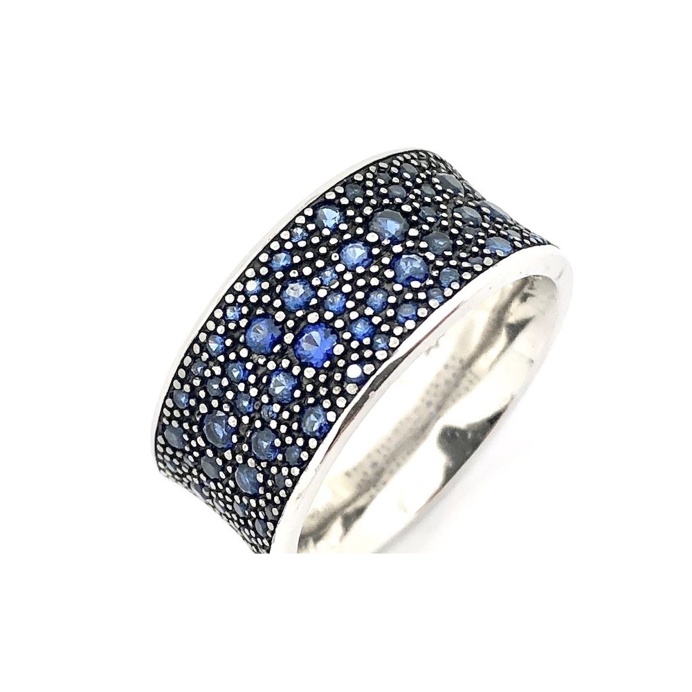 Silver ring with blue zirconia stones