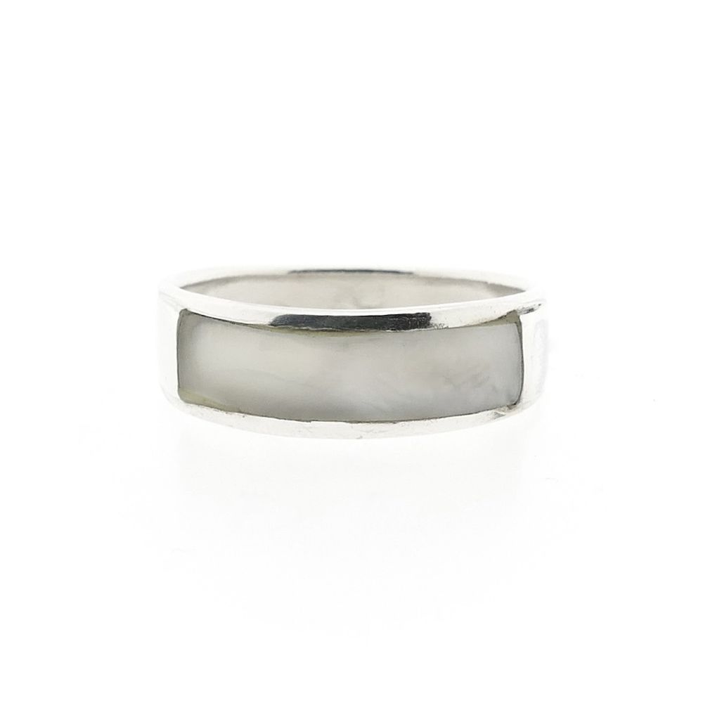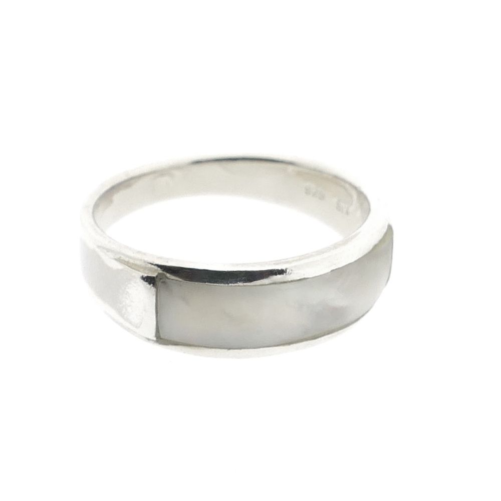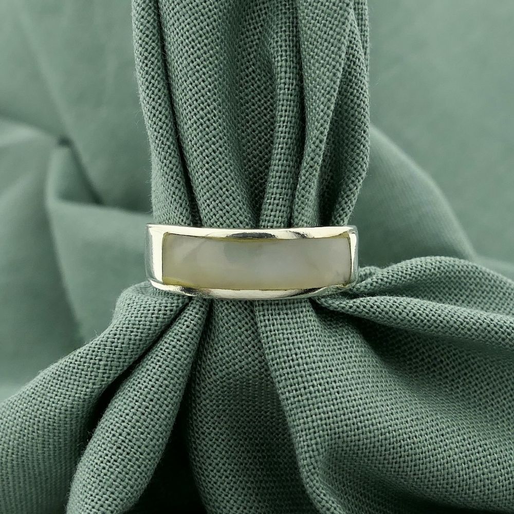 Silver women's ring set with a wide mother-of-pearl stone. The ring is made of first-grade silver (925/1000).