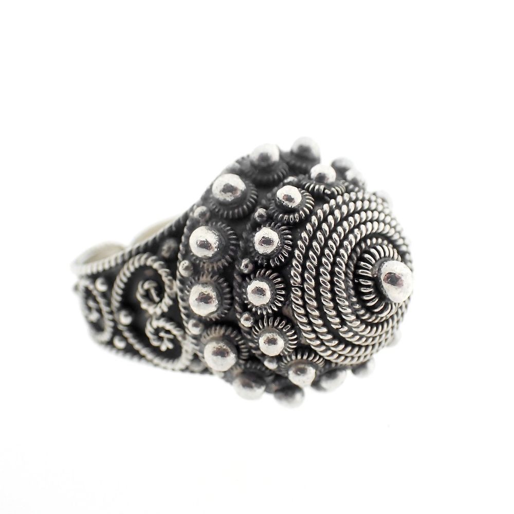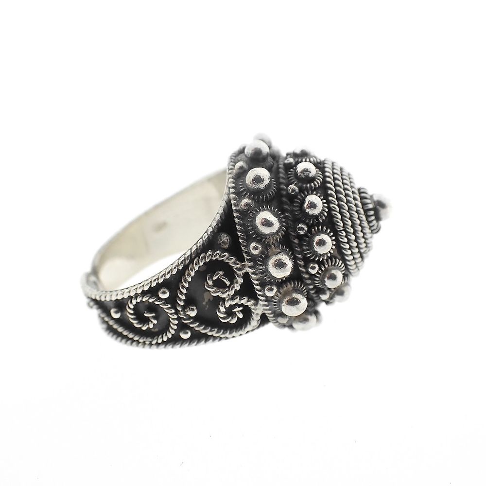 Silver ring with oriental design