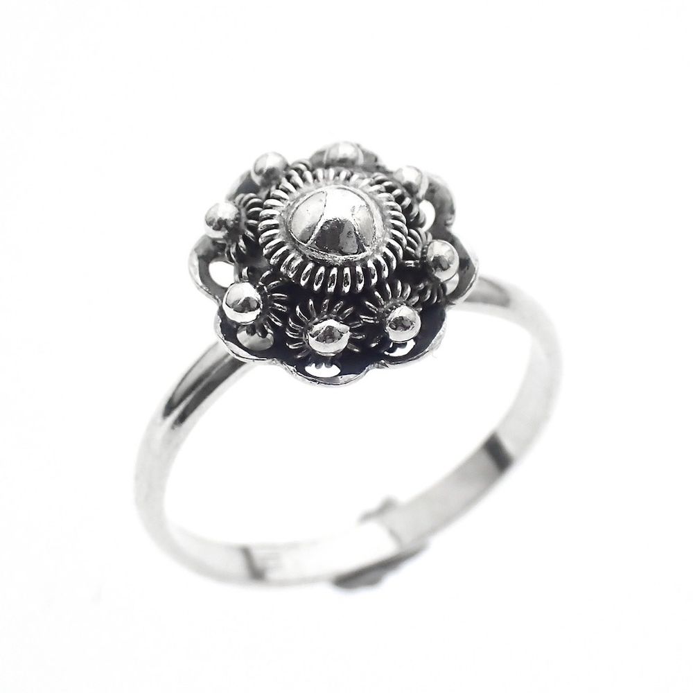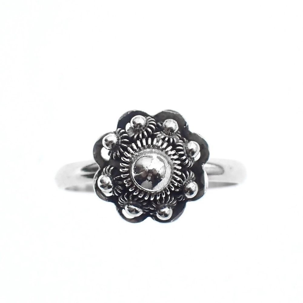 Silver ring with a beautiful Zeeland button. The ring is made of second-grade silver (835/1000). Zeeland buttons are an important part of Zeeland traditional costume. Men often wore the buttons as throat studs (on the collar), and women used them as a bonnet bell, for example. They were made of bronze, silver, and gold. The larger the button, the wealthier the wearer. Buttons were worn before they became a formal part of traditional costume. Their use even dates back to the time of Michiel de Ruyter (late 17th century)!