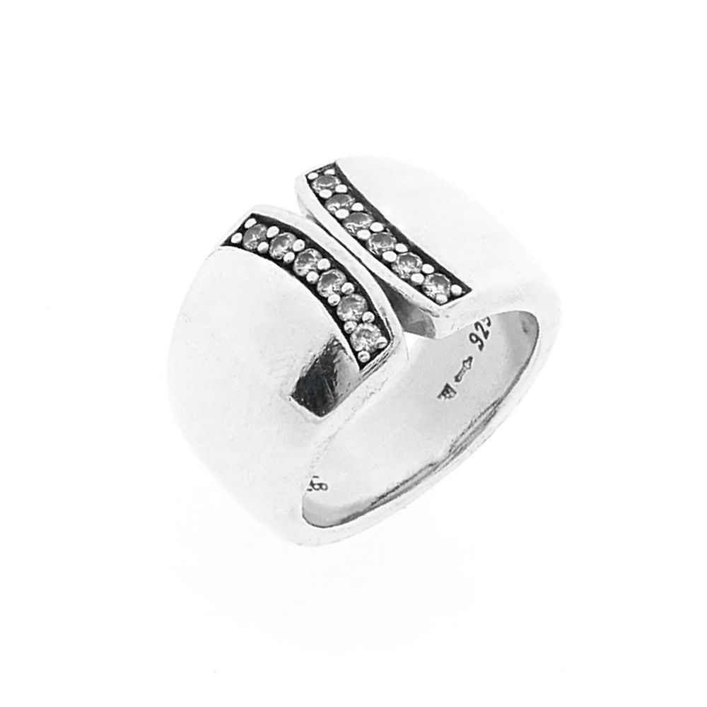 Silver ring with twelve beautiful round brilliant-cut zirconia stones from TiSento. This smooth and stylish ring features two rows of zirconia stones across the width of the ring. Crafted from premium silver (925/1000), this ring is a true gemstone.