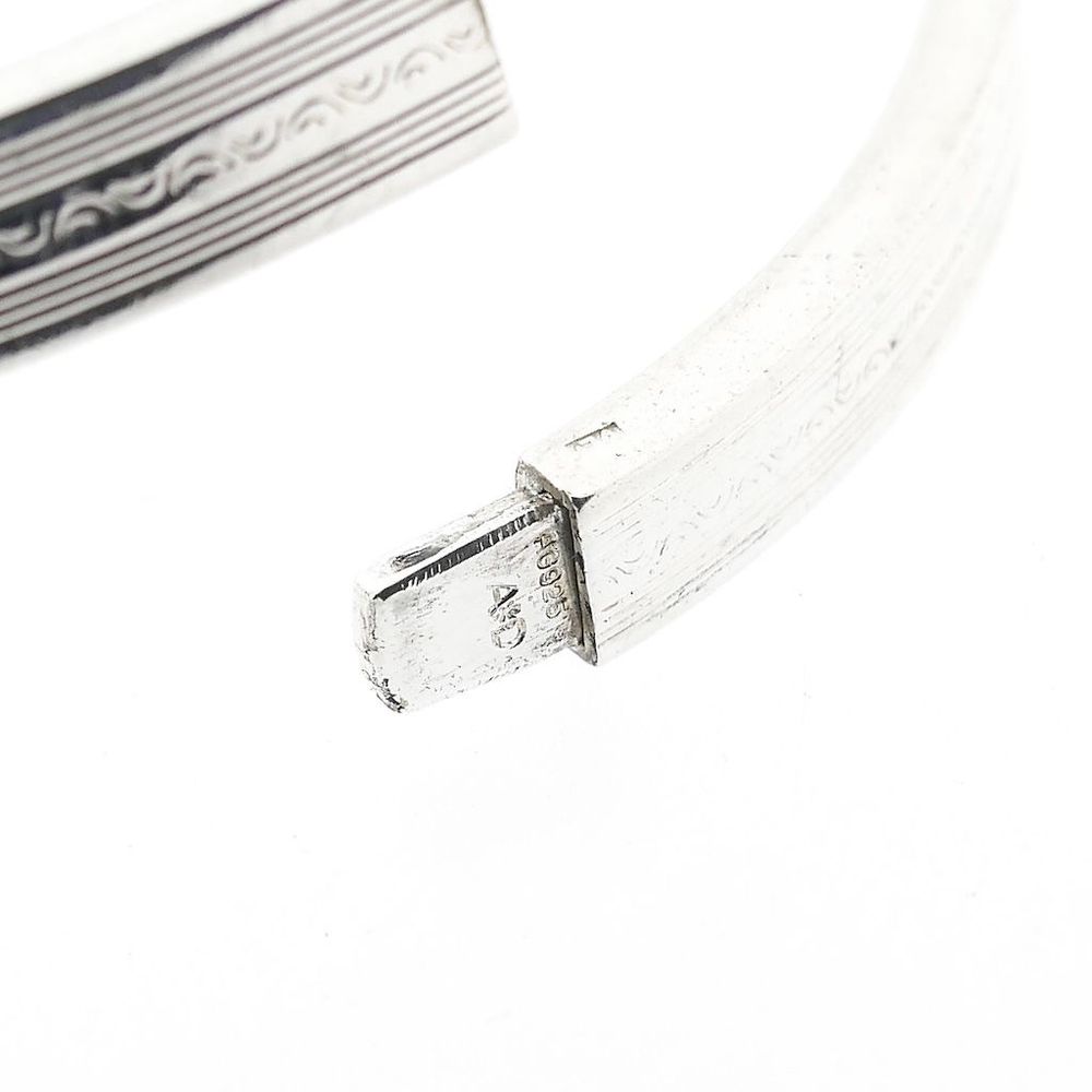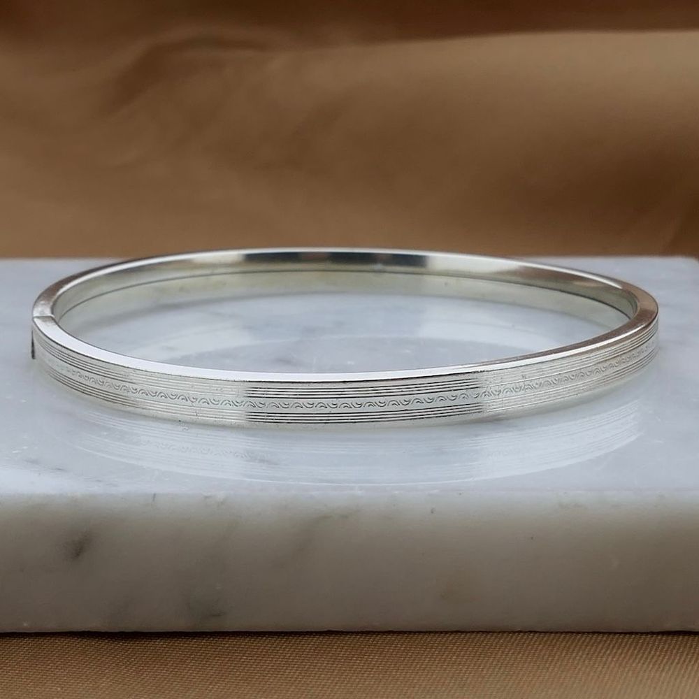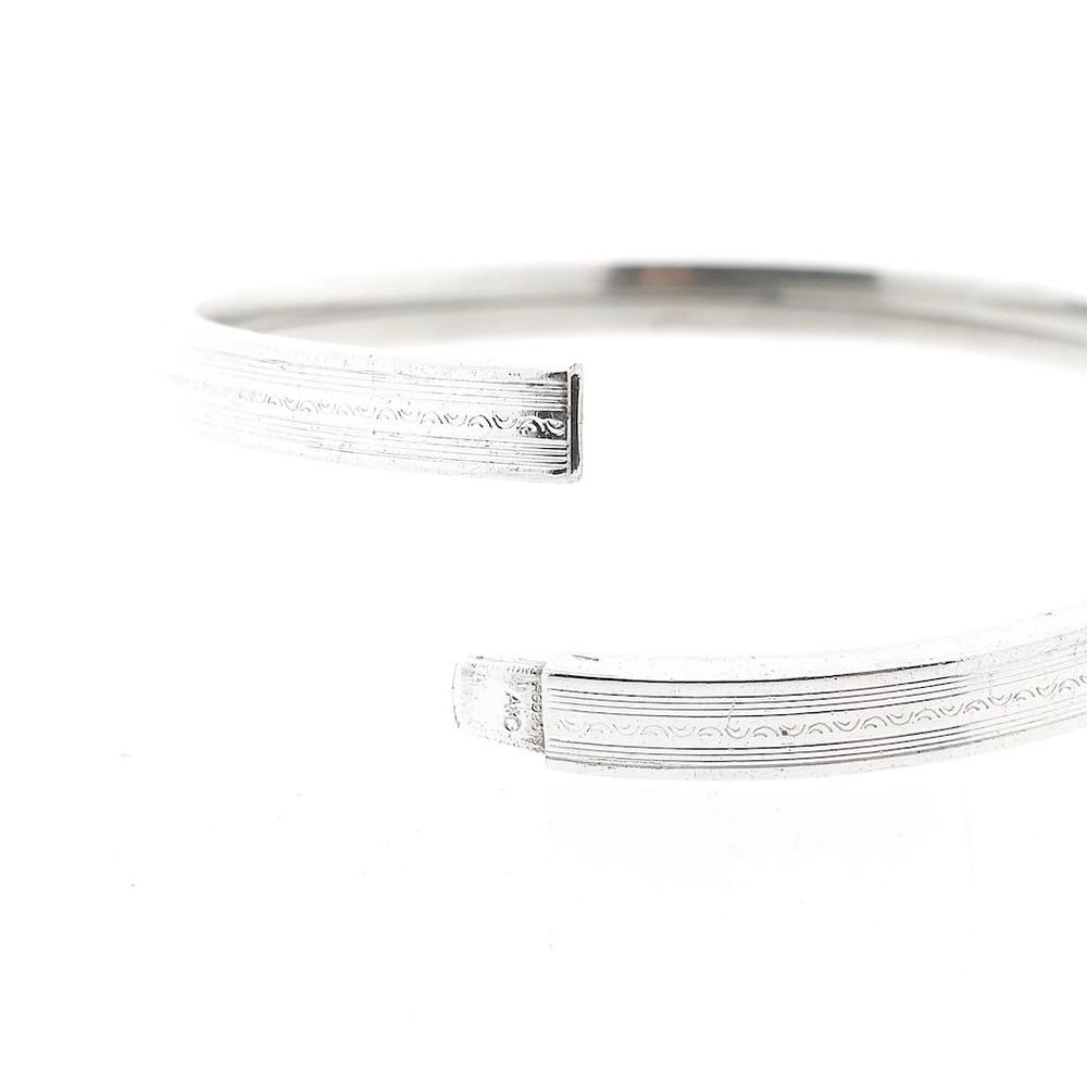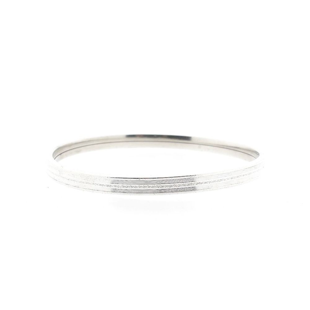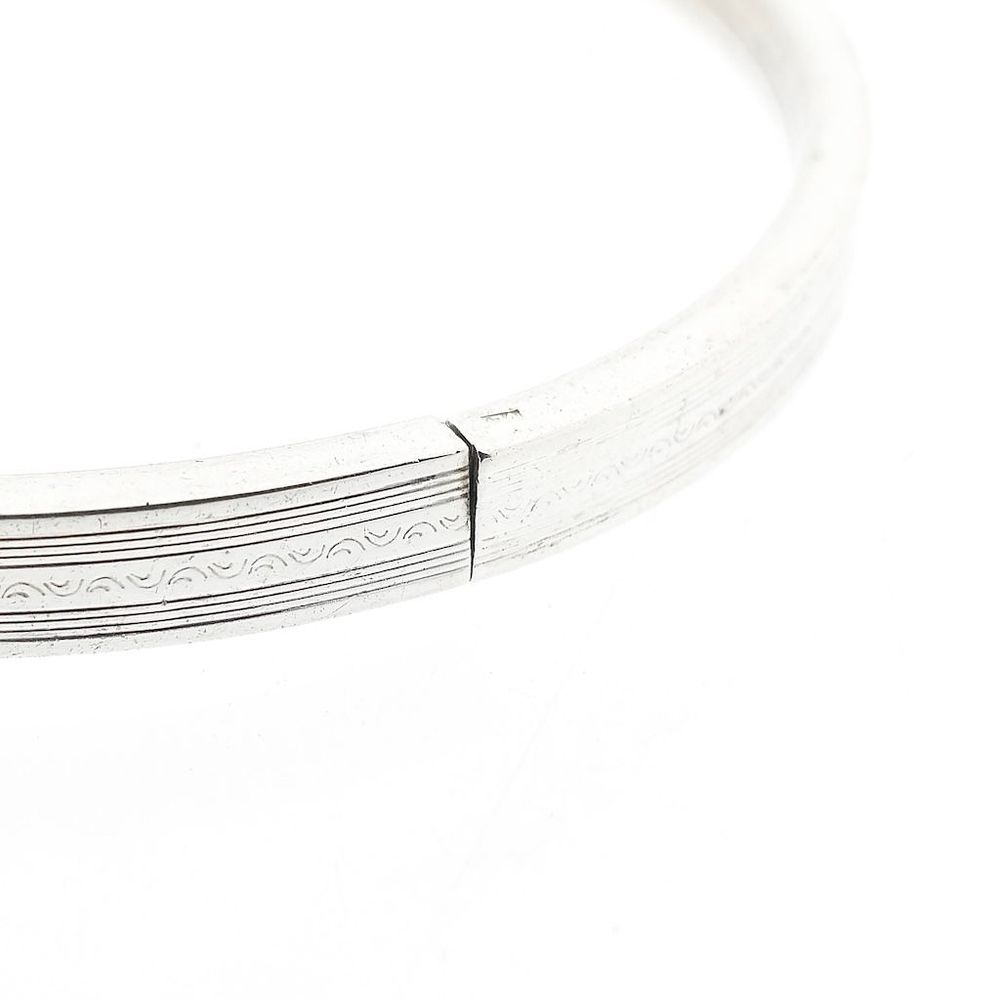 Silver slave bracelet with diagonal lines and a subtle pattern in the middle. The bracelet is made from the finest quality silver (925/1000).