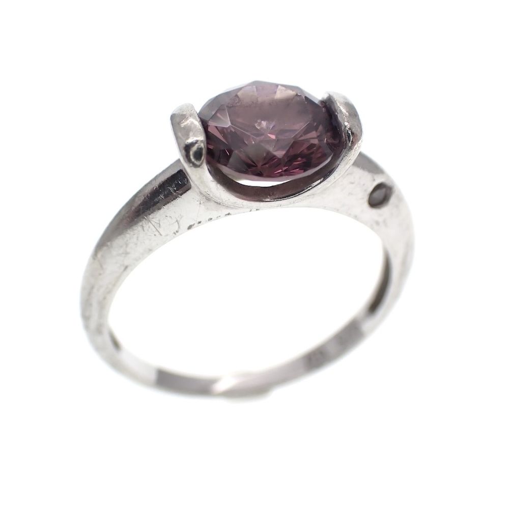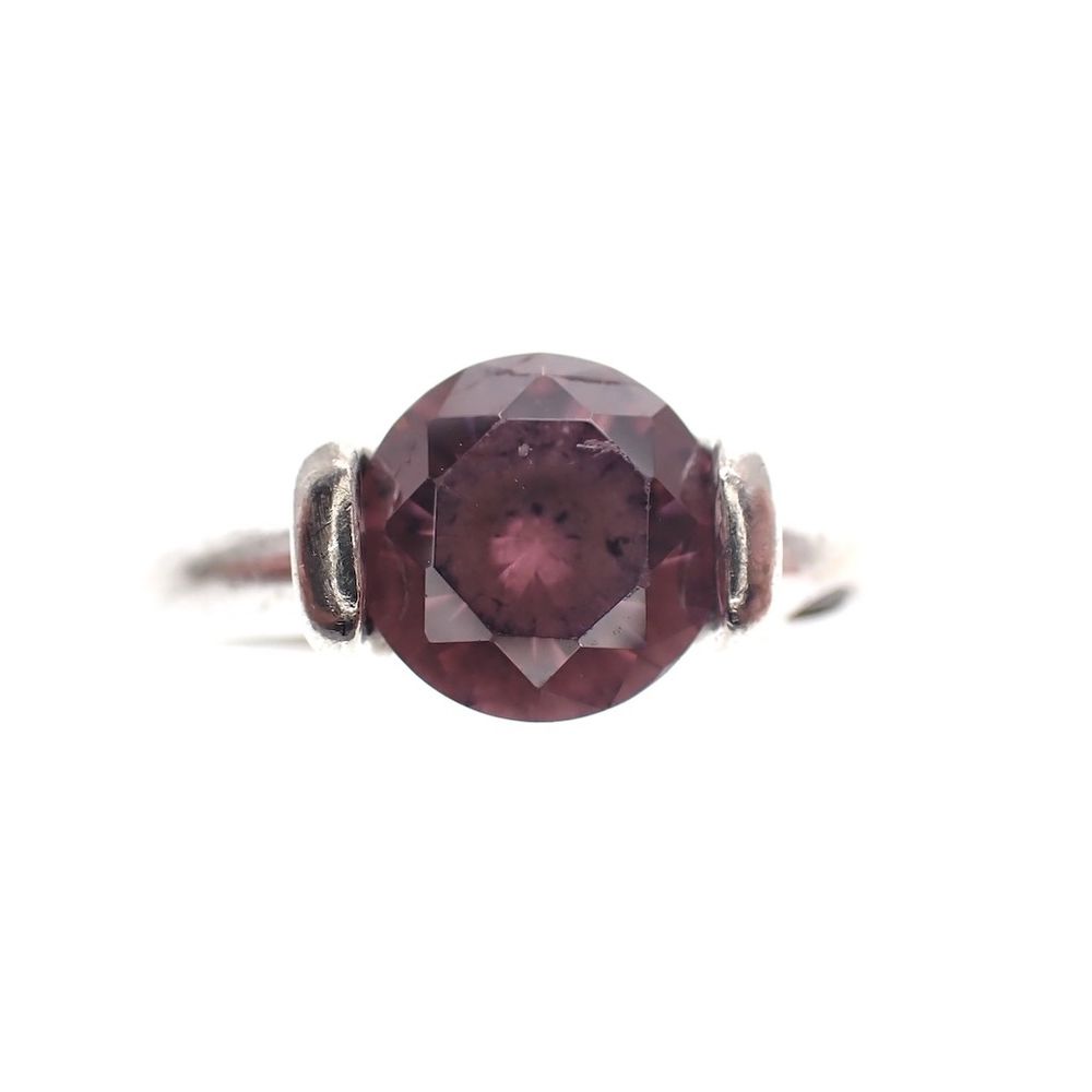 Silver solitaire ring with dark pink zirconia