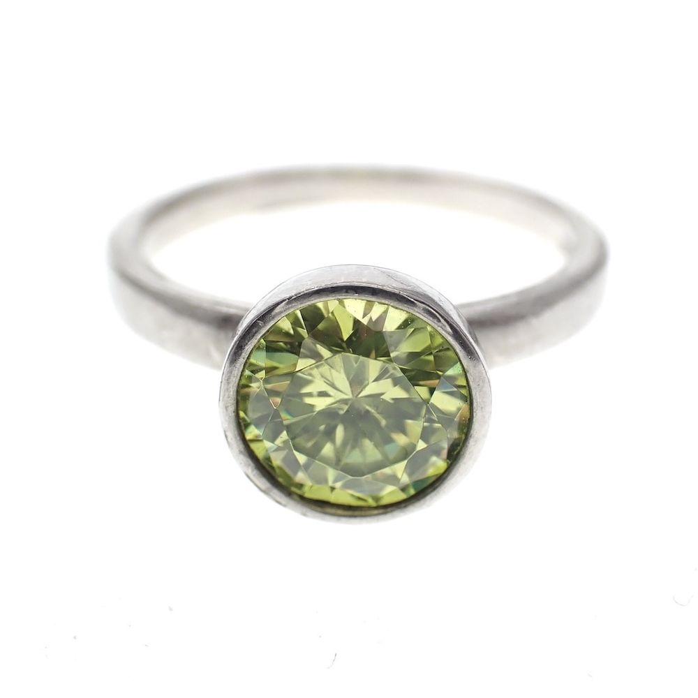 Silver solitaire ring with green zirconia