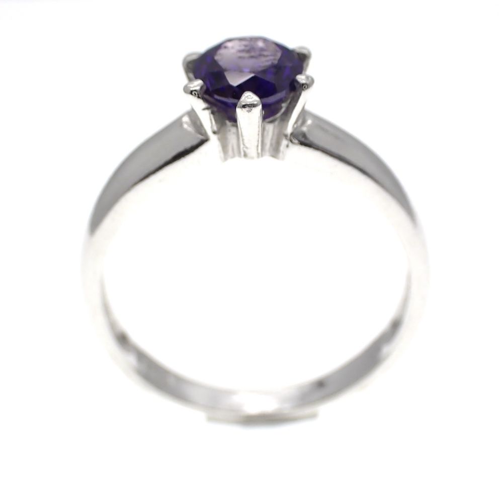 Silver solitaire ring with purple zirconia
