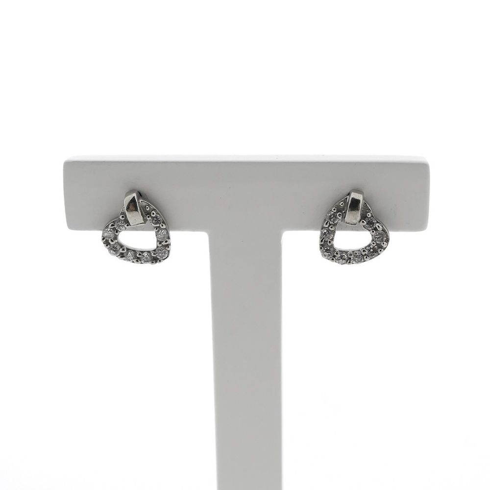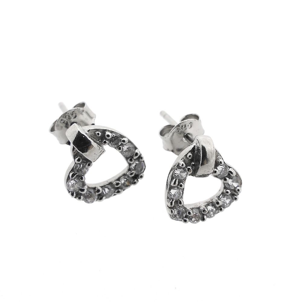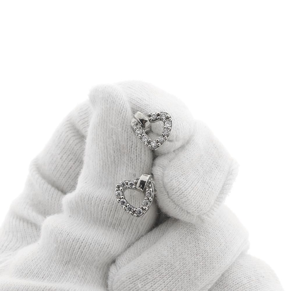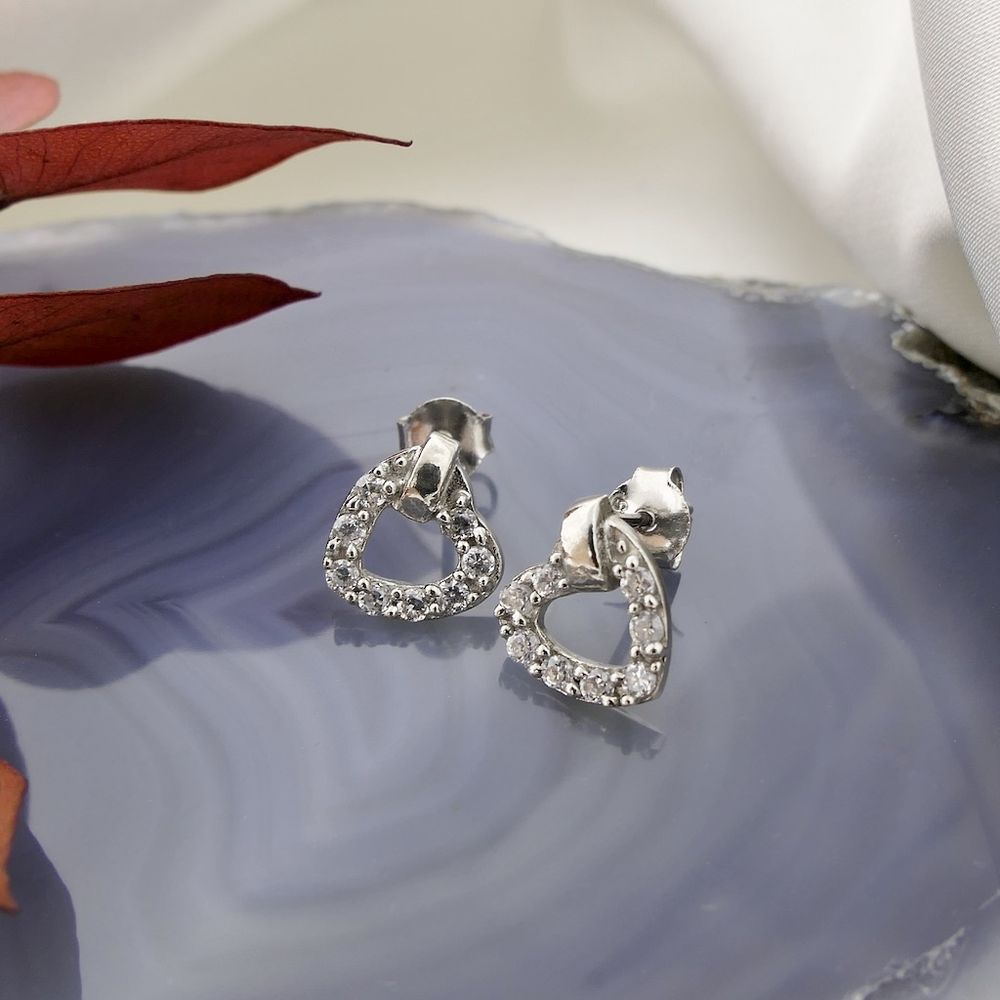 A set of silver stud earrings featuring a heart and zirconia. The studs are openwork, and the edge is decorated with a row of beautiful round, brilliant-cut zirconia stones. The set is made of sterling silver (925/1000).