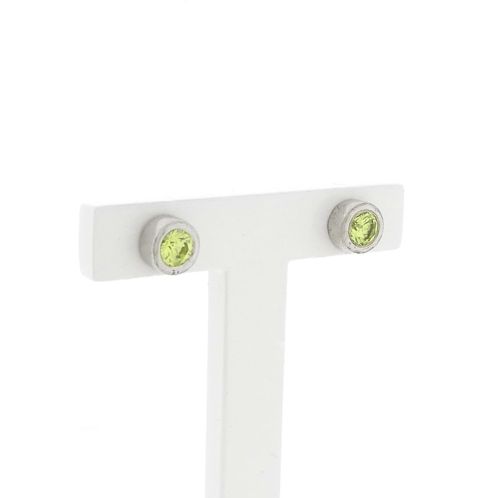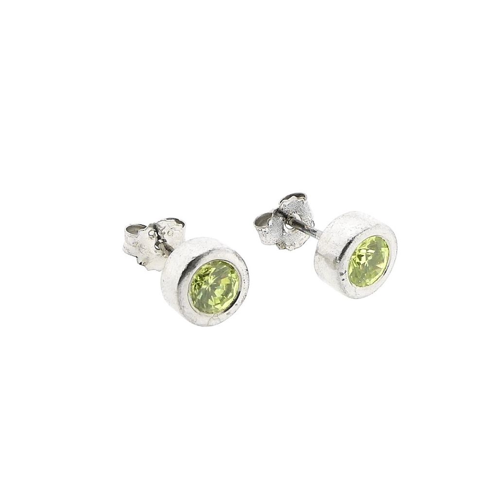 A set of silver stud earrings set with green round brilliant-cut zirconia stones. The studs have a diameter of 7.7 mm. The set is made of sterling silver (925/1000).