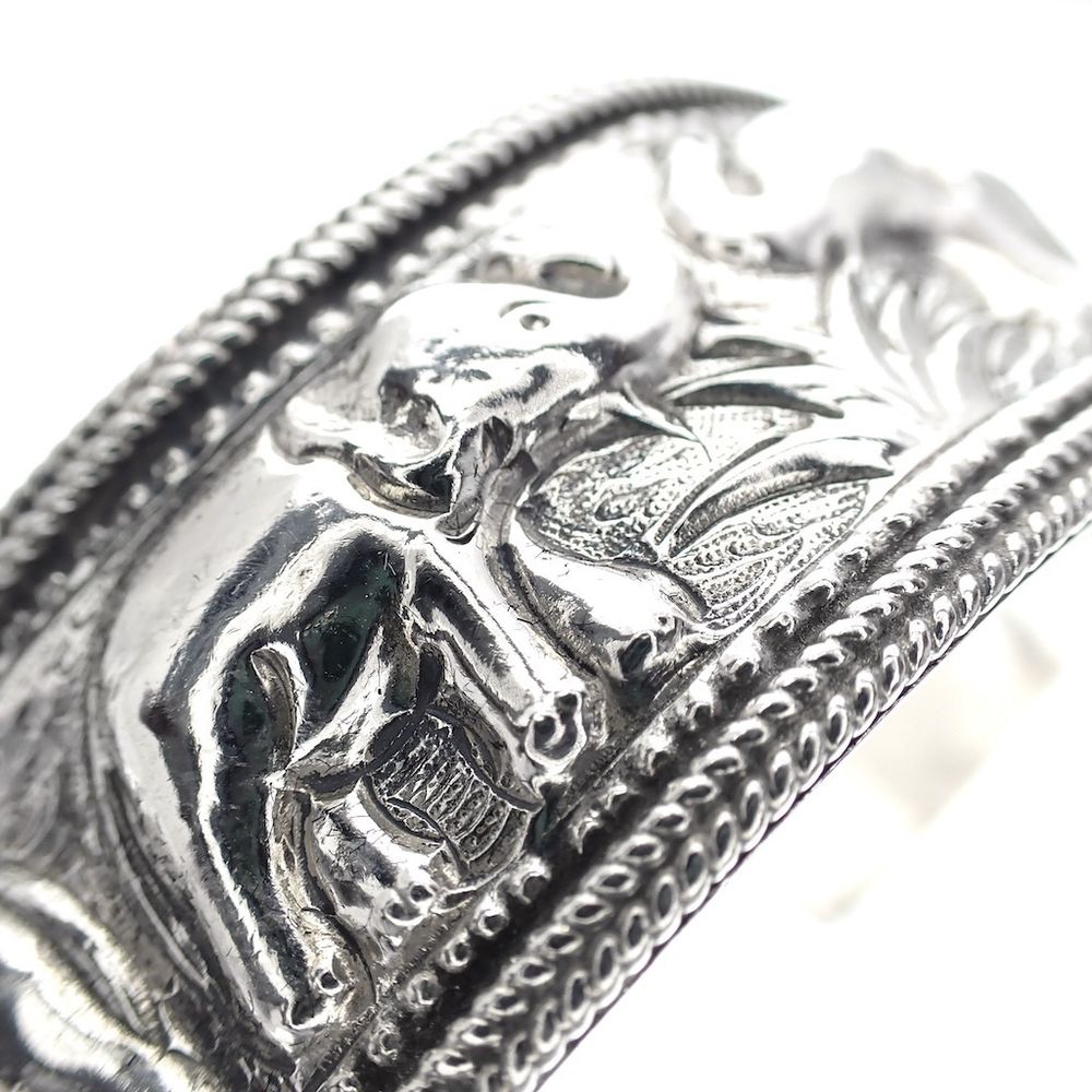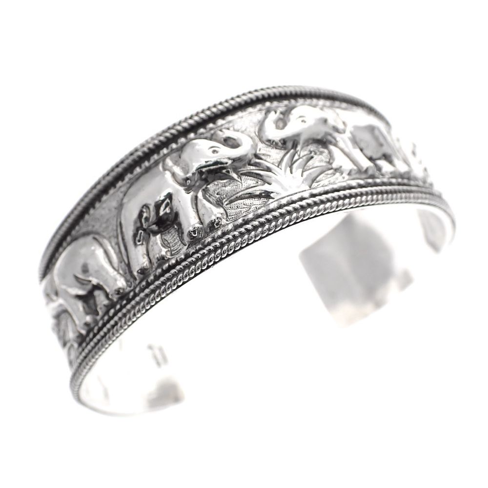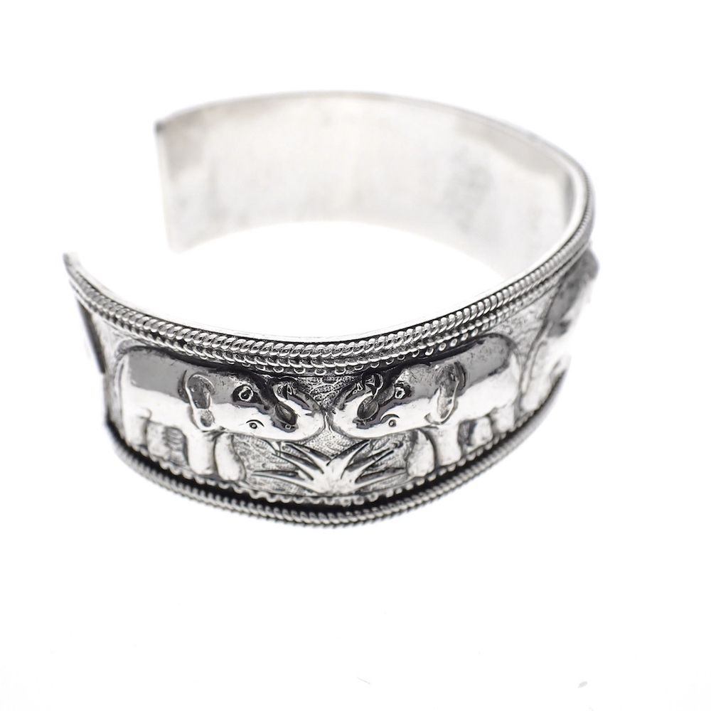 Silver Thai clamp bracelet with elephant relief | Ø 62 mm