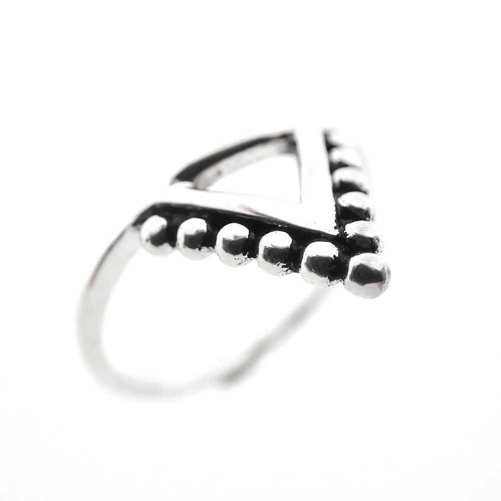 Silver triangle ring with balls