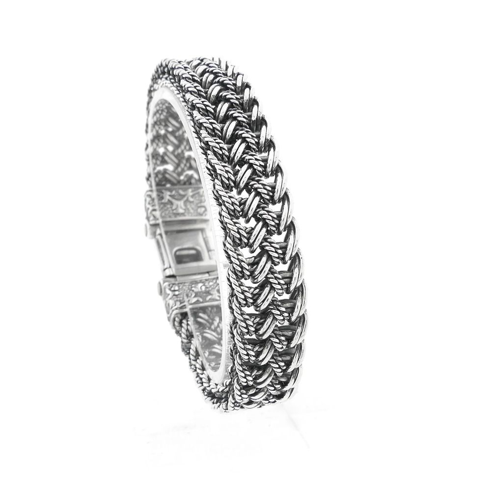 Silver wide fantasy/fox tail link bracelet. The clasp is engraved with Mexico. The bracelet is made from first-grade silver (925/1000).