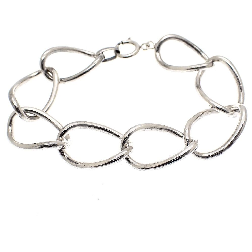 Silver wide link bracelet | 20 cm