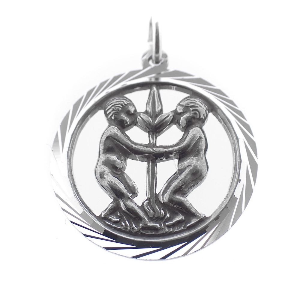 Silver zodiac sign pendant; Gemini