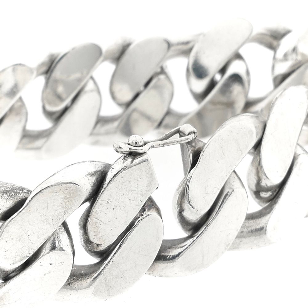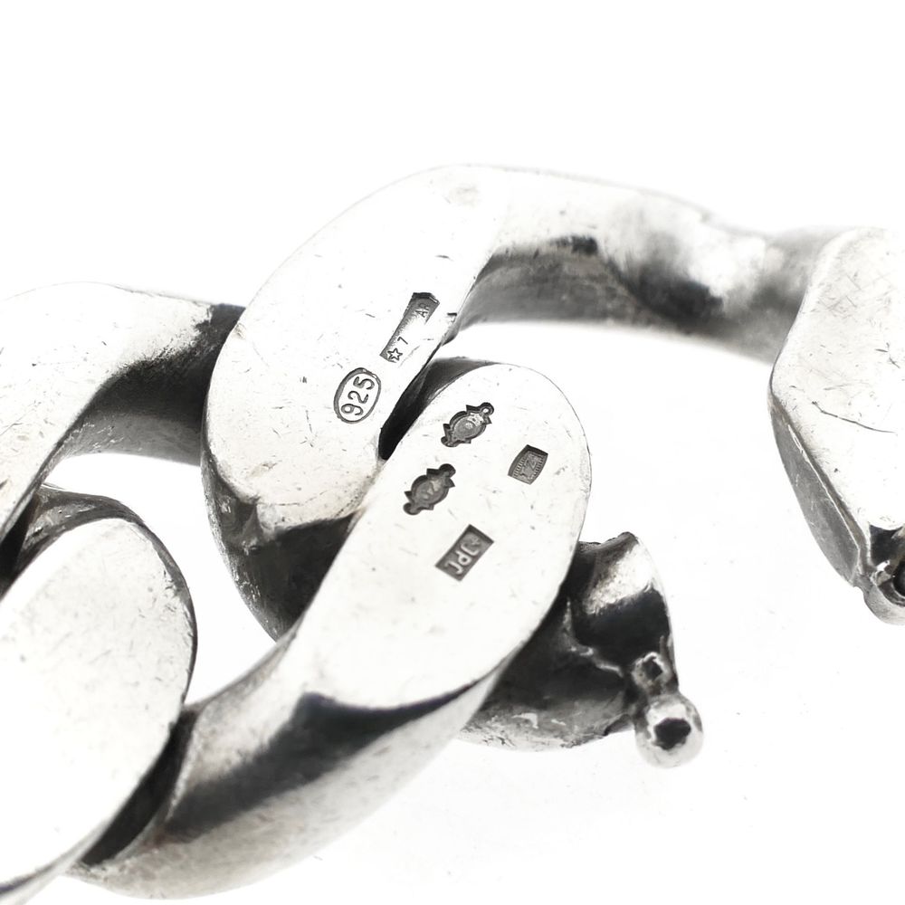 Solid silver bracelet made with gourmet links. The chunky links provide a robust appearance. The bracelet closes with a fancy clasp including a safety hook and is made of high-grade silver (925/1000).