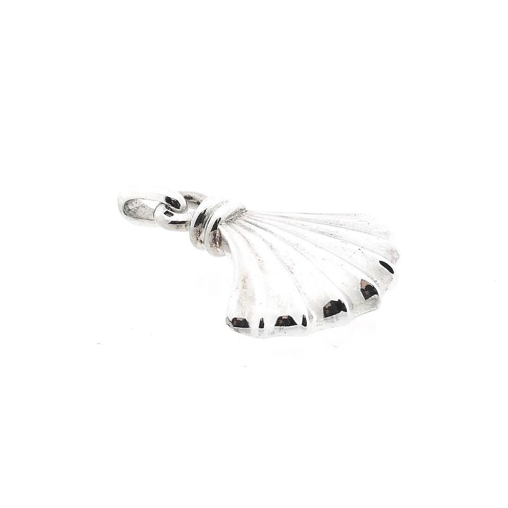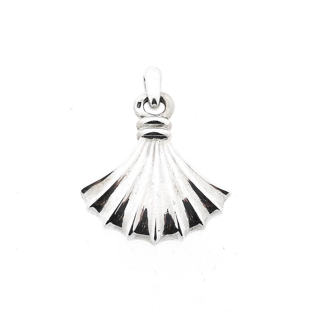 Solid silver pendant designed in an elegant shell shape, detailed with a ribbed texture. This beautiful and sturdy pendant is made of first sterling silver (925/1000).