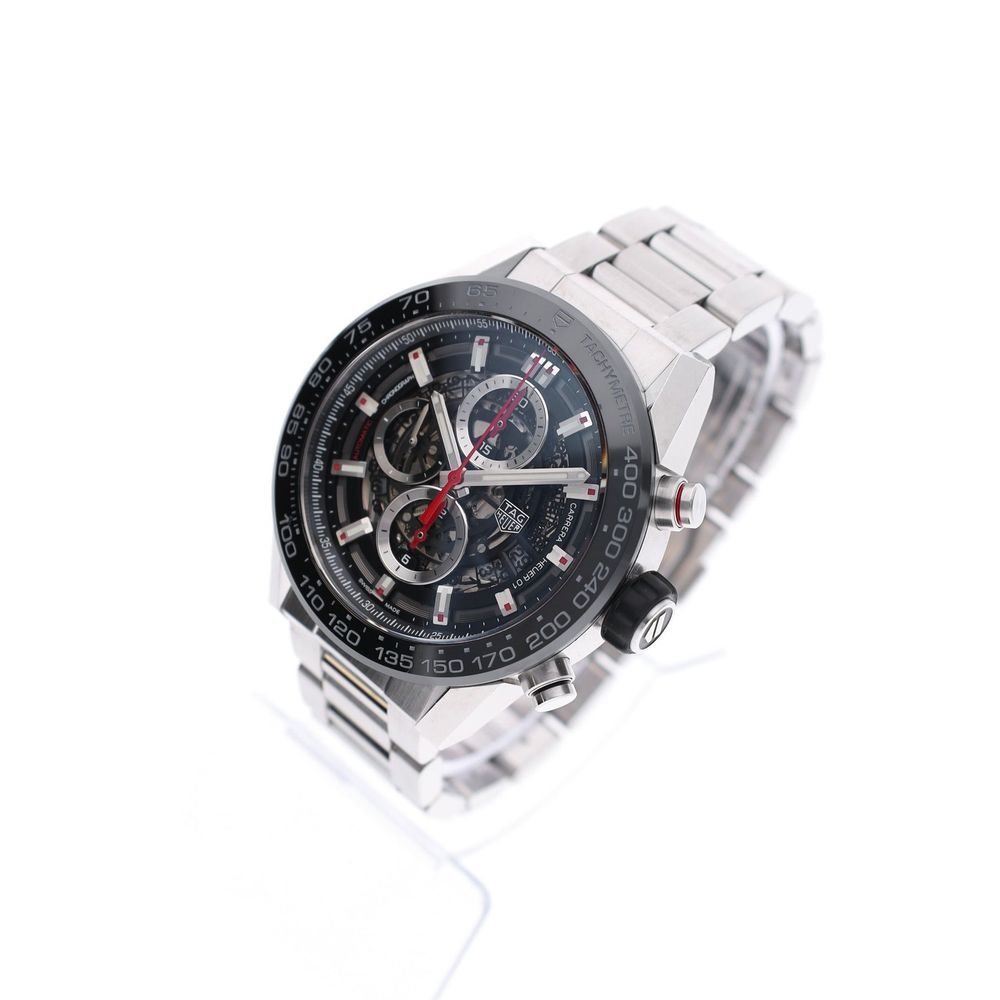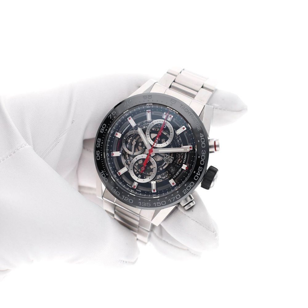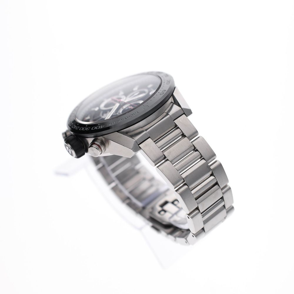 This is one of the latest Carrera models featuring a high-quality Manufacture (TAG Heuer in-house) Calibre 01 movement, ceramic bezel, sapphire crystal on both the front and back, and is supplied as a full set in good condition.