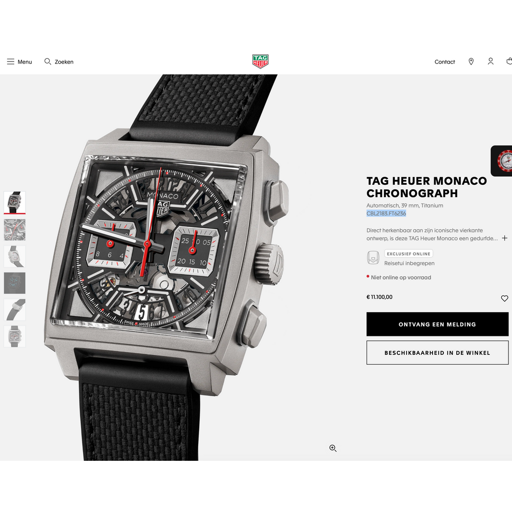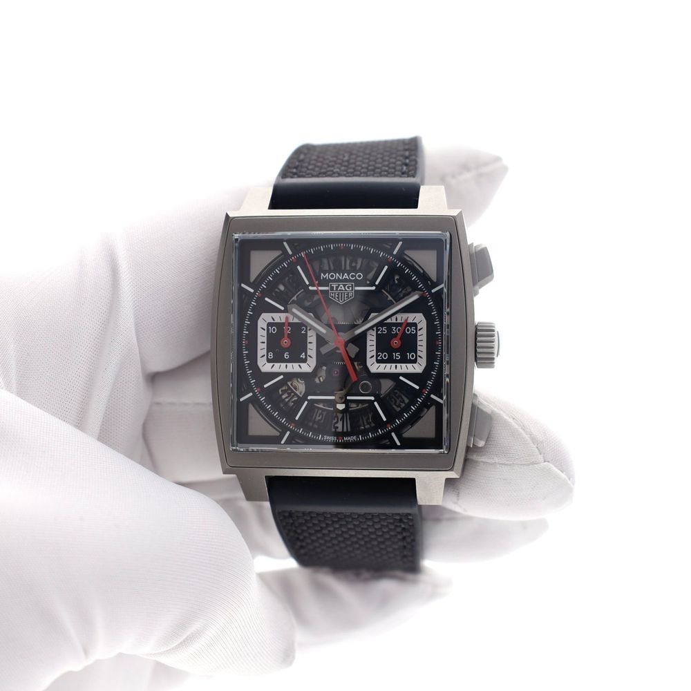 This model features a 39mm titanium case, providing a sporty look combined with surprisingly light wearing comfort. The combination of high-quality materials, skeletonized dial, and the characteristic Monaco design makes this watch both technically and visually something special. It's no wonder the last known retail price is substantial at €11,100,-