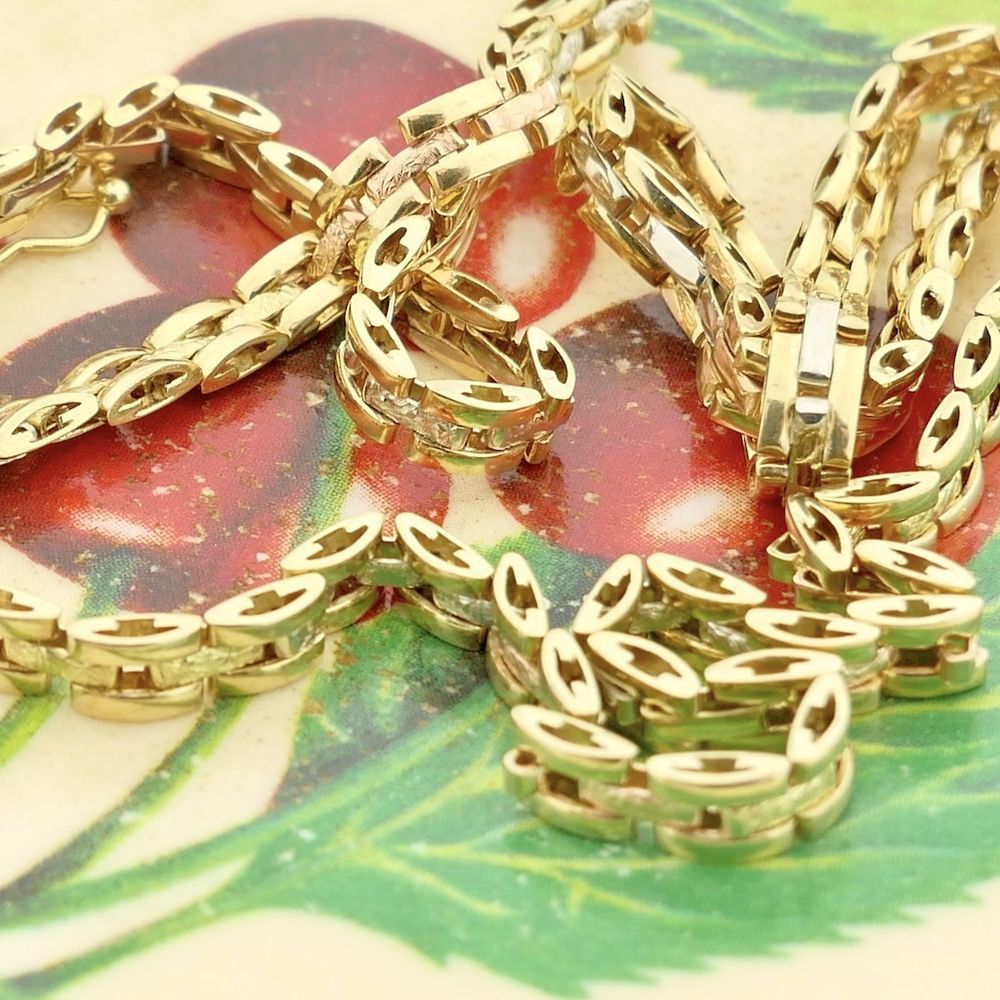 Tricolor gold fantasy link necklace