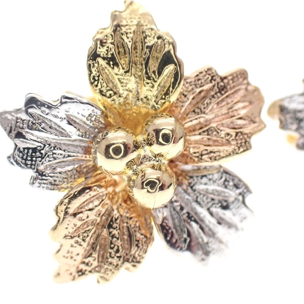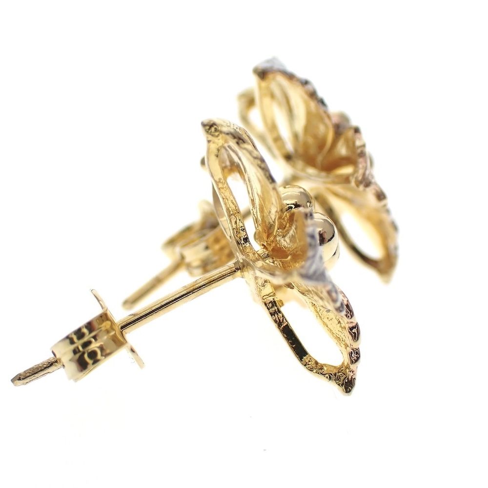 Tricolor gold flower stud earrings