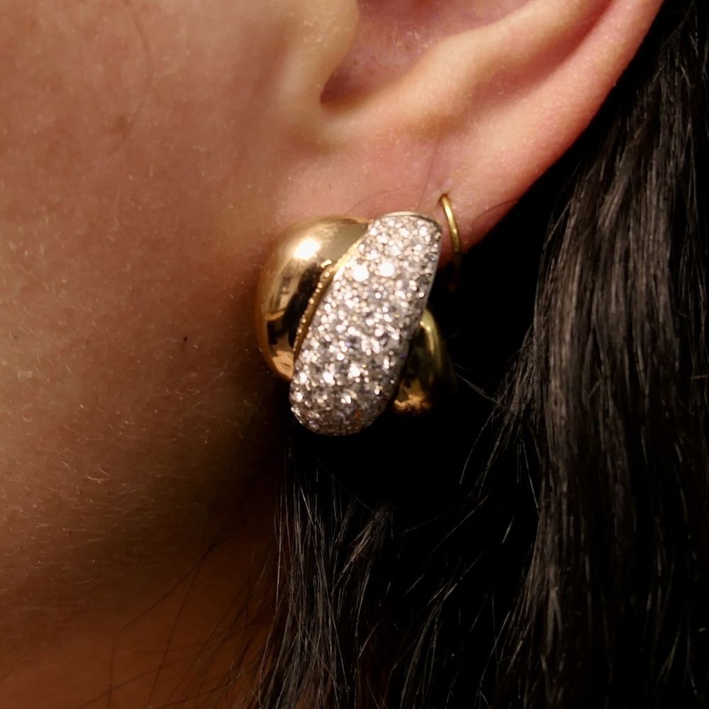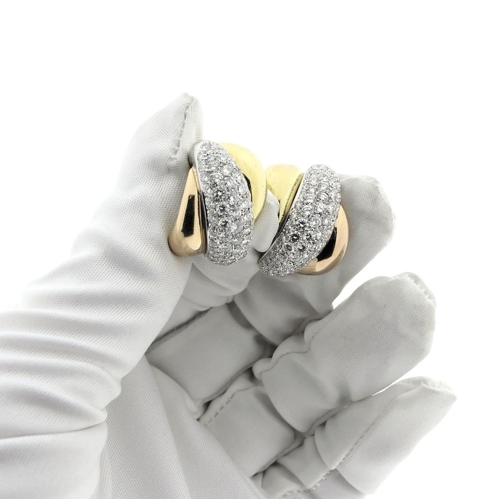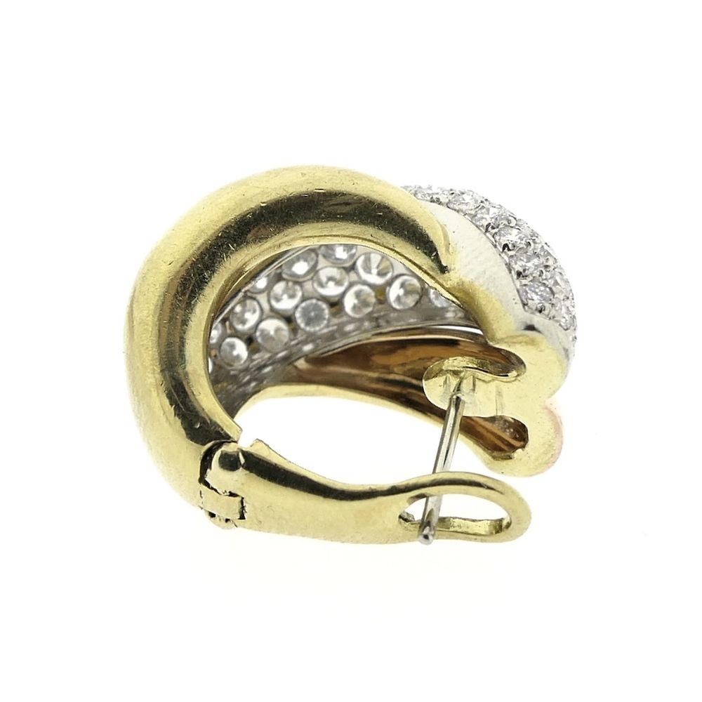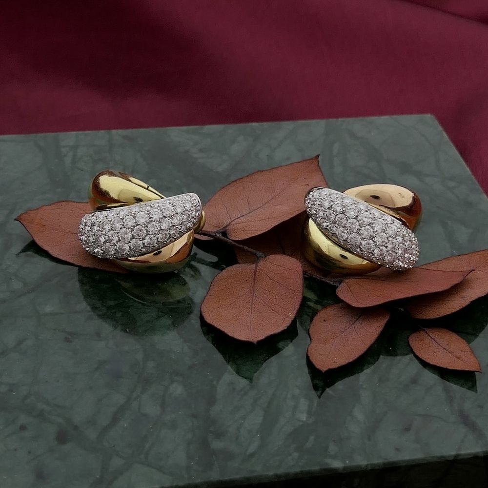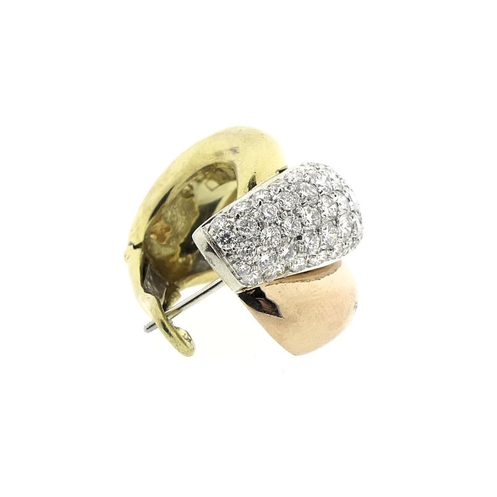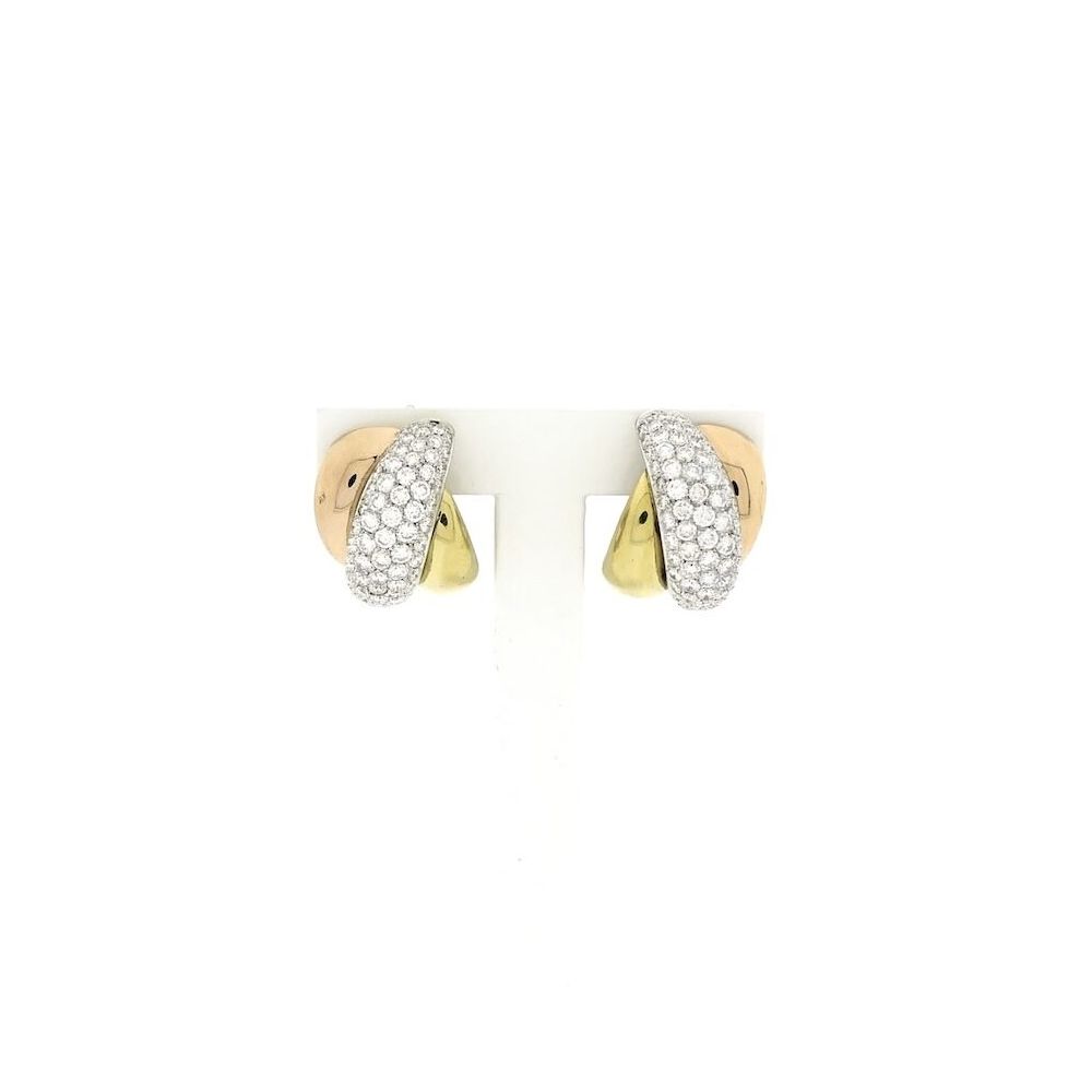 Tricolor gold stud earrings with diamonds; Approx. 3.00 ct.