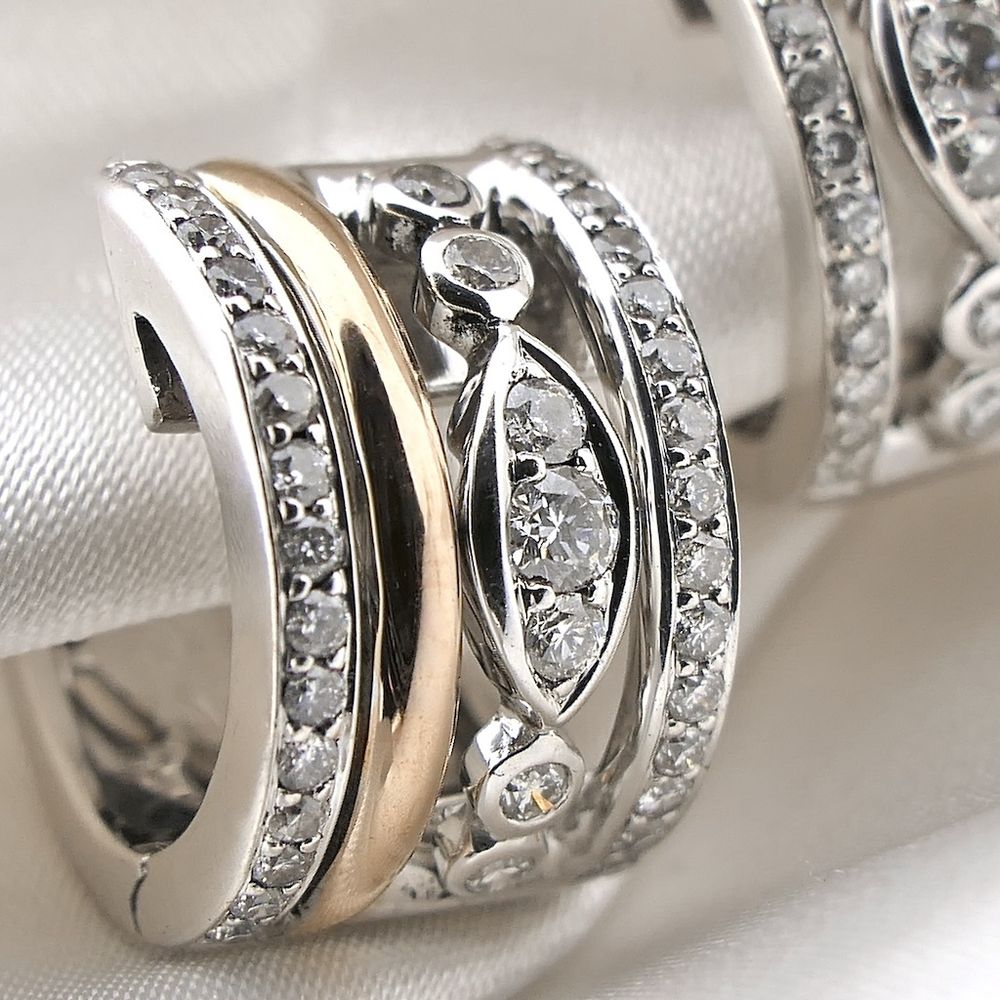 Two-tone gold earrings from AL CORO. The earrings are set with natural diamonds and feature a rose gold band. The white diamonds weigh 0.50 ct in total (0.25 ct each). These unique, luxurious earrings are crafted from 18-karat rose and white gold (750/1000).
