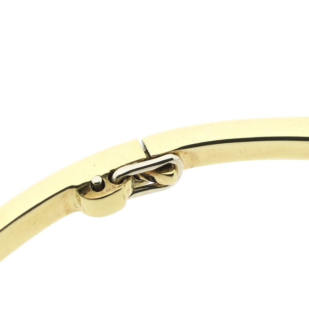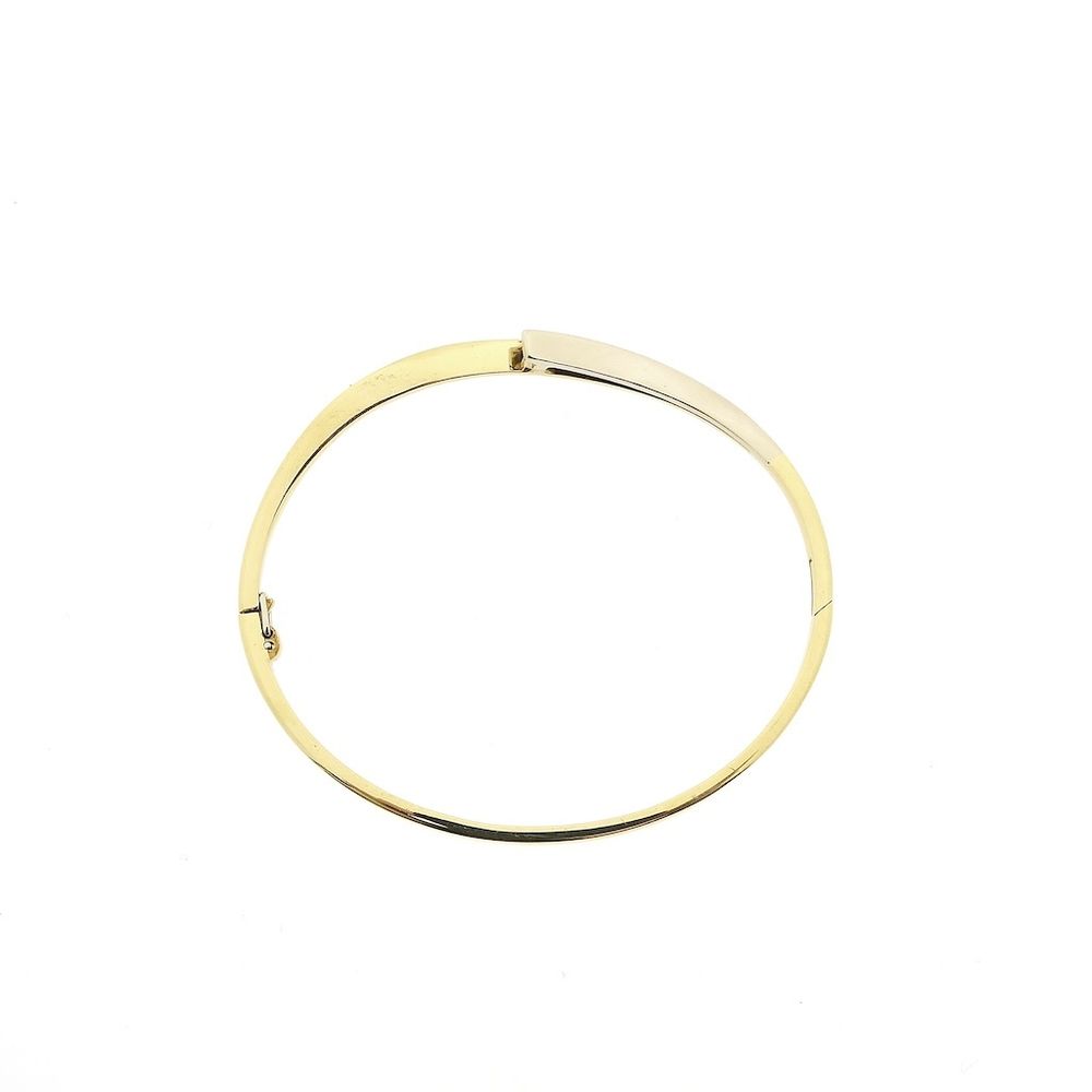 Two-tone gold bangle with diamonds. A beautiful and elegant piece for the wrist. This stunning, timeless bracelet closes with a box clasp and is crafted from 14-karat white and yellow gold (585/1000).
