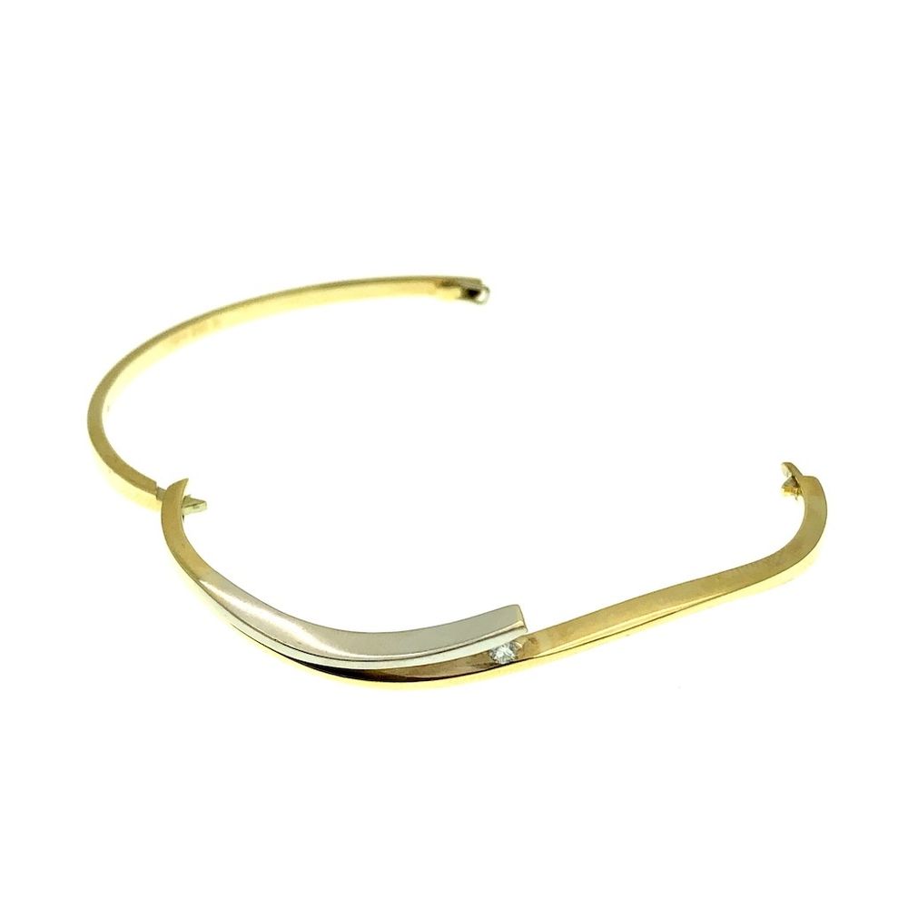 Two-tone gold bangle with 0.05 ct. diamond | Ø 61 mm
