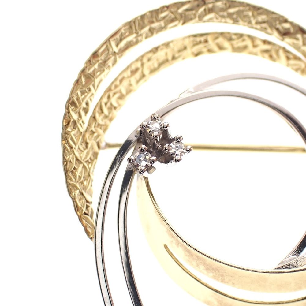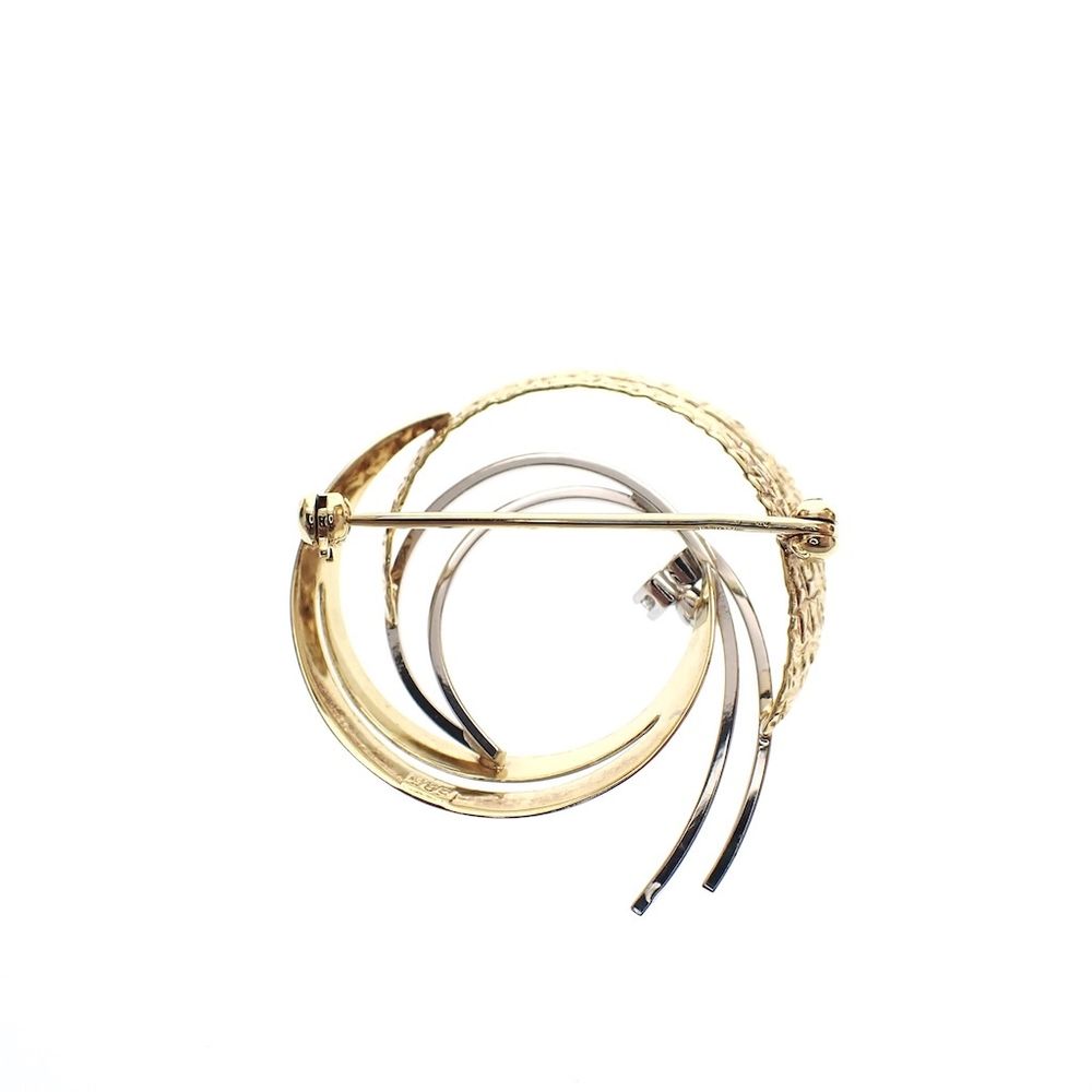 Two-tone gold brooch with 0.06 ct diamond.