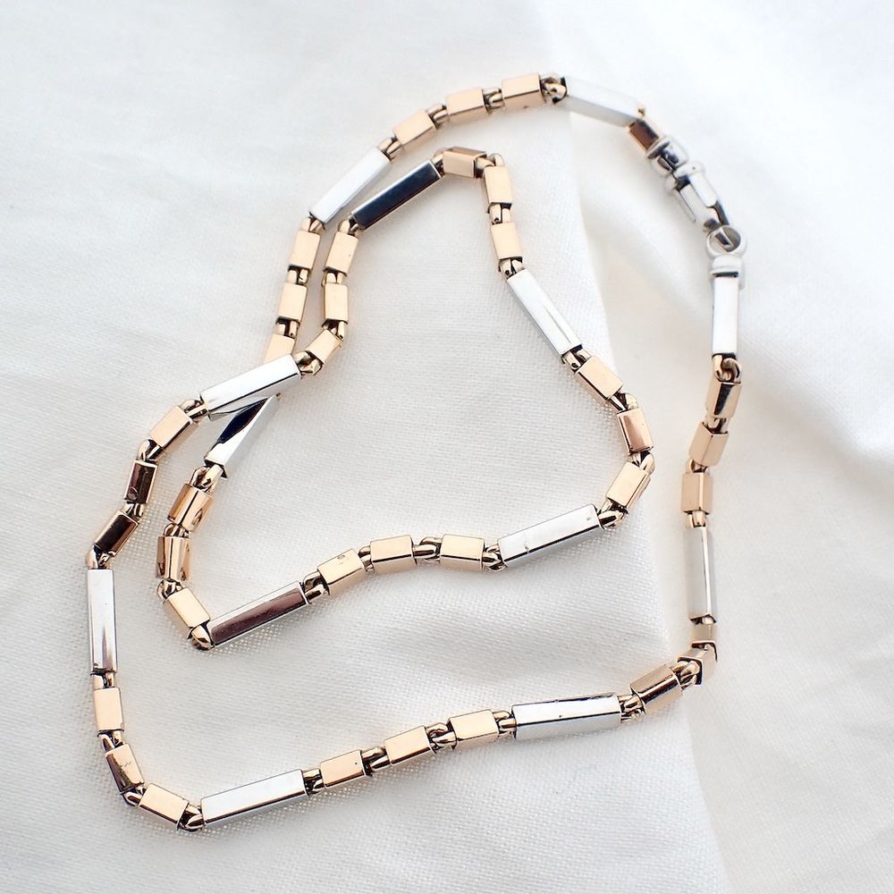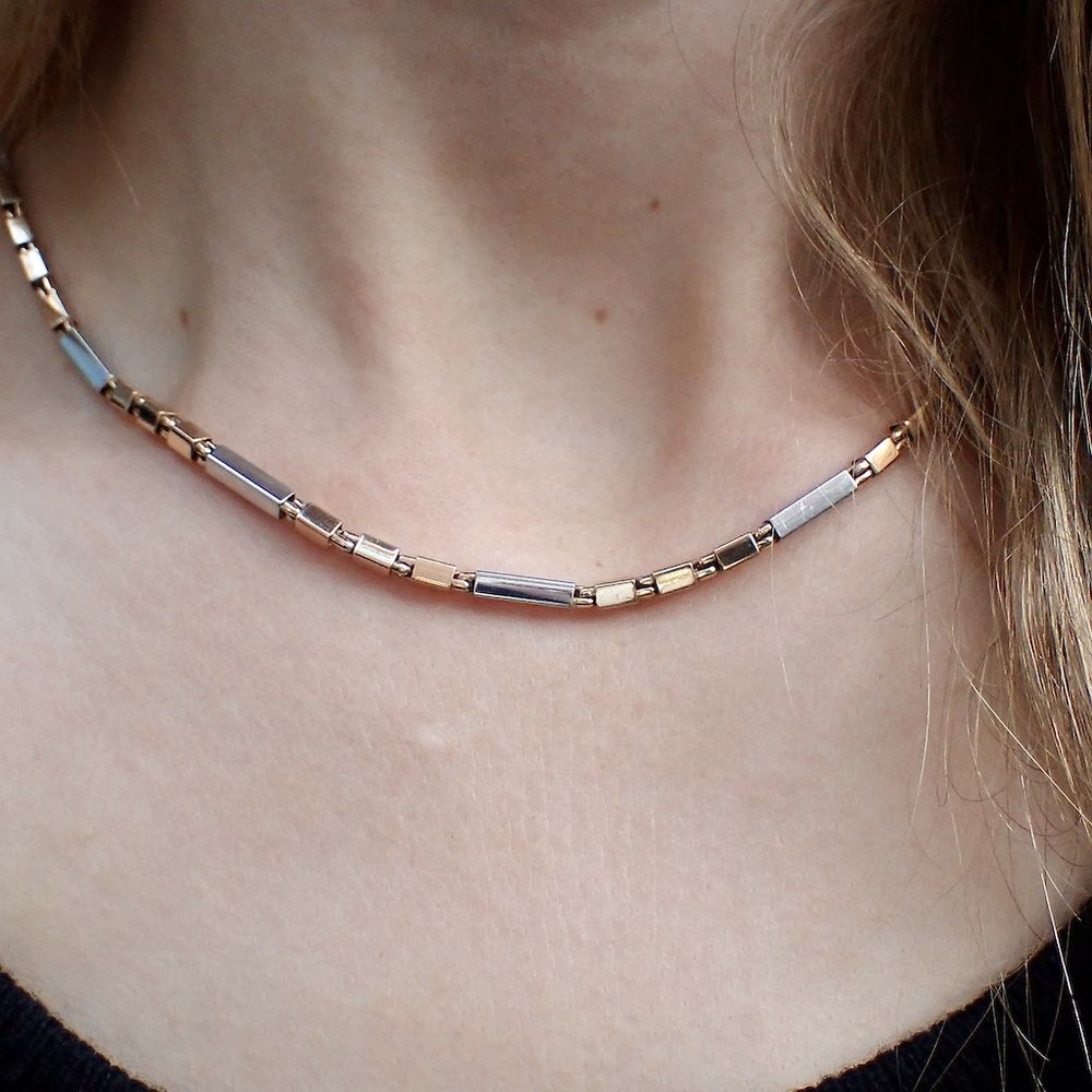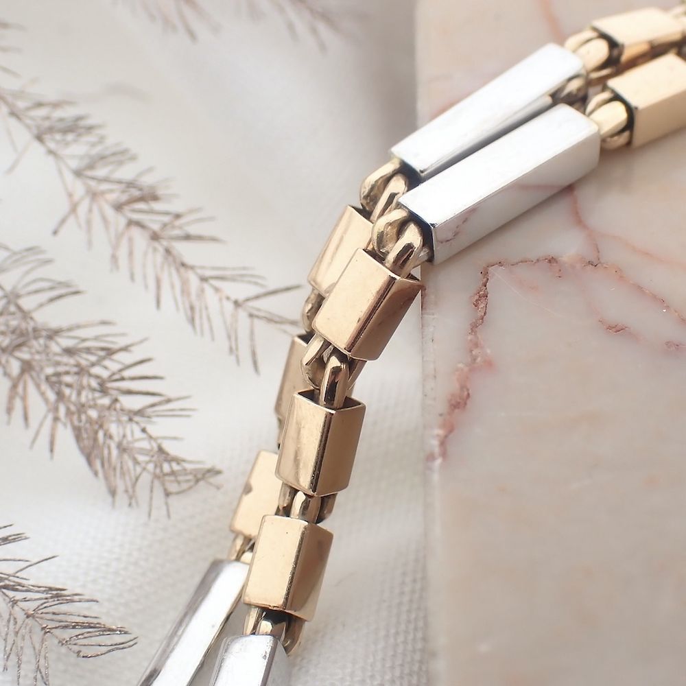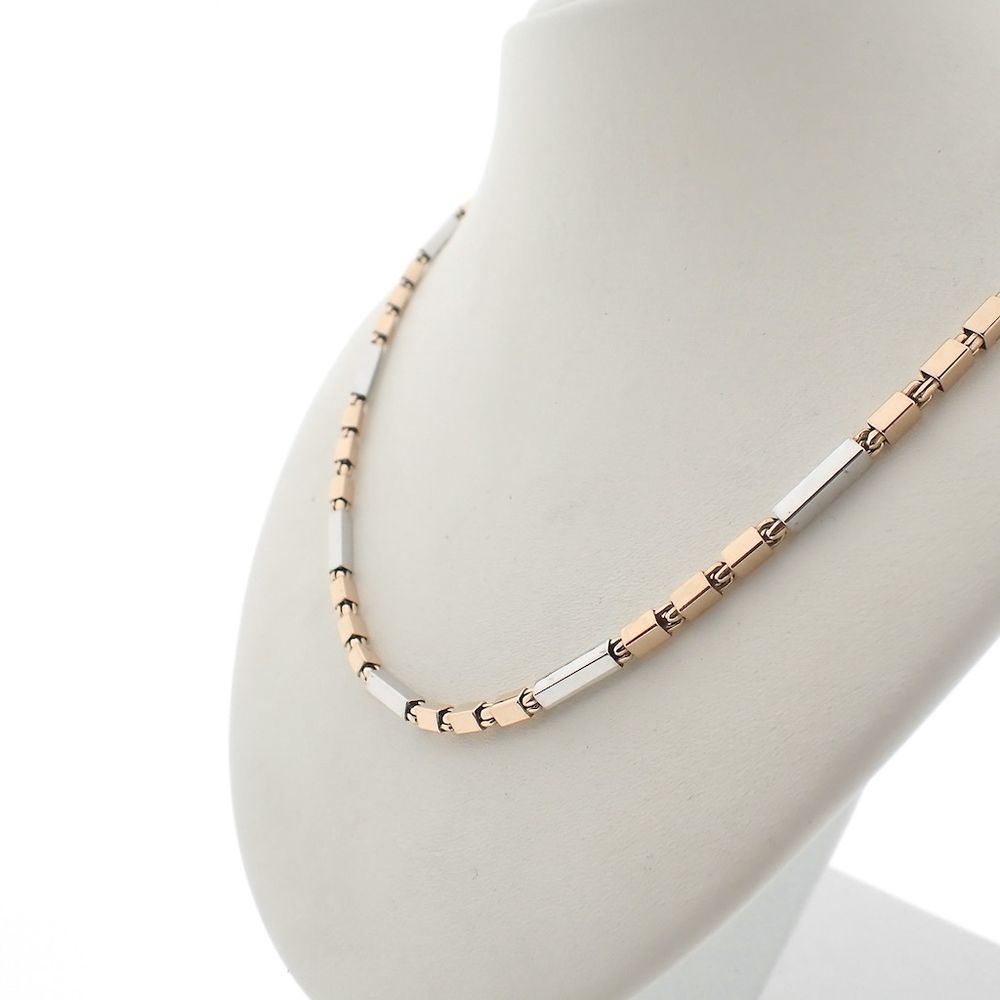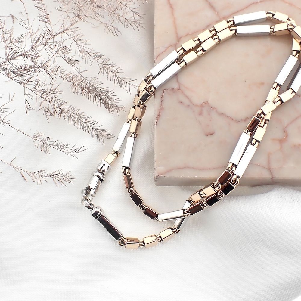 Two-tone gold checkered link necklace | 45 cm