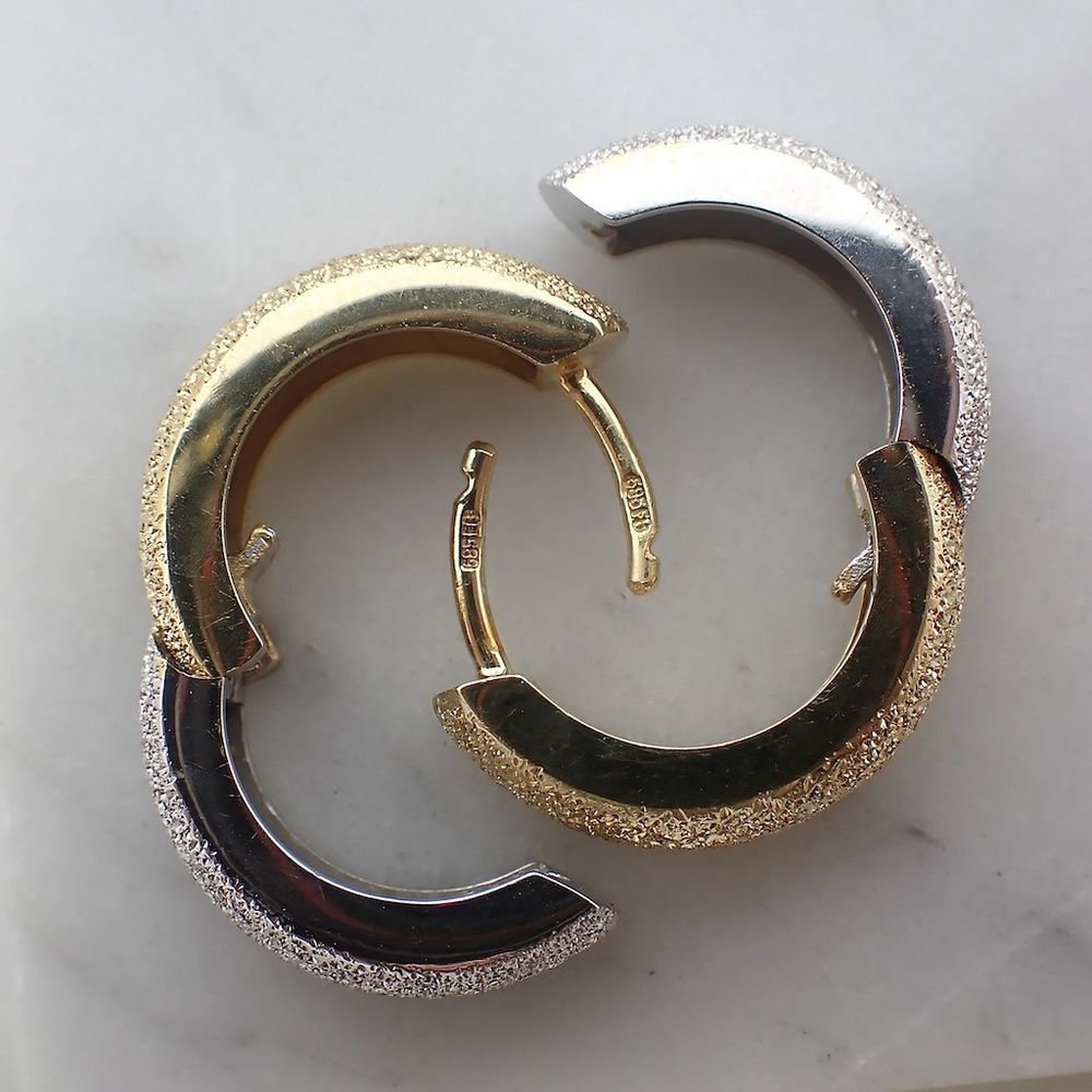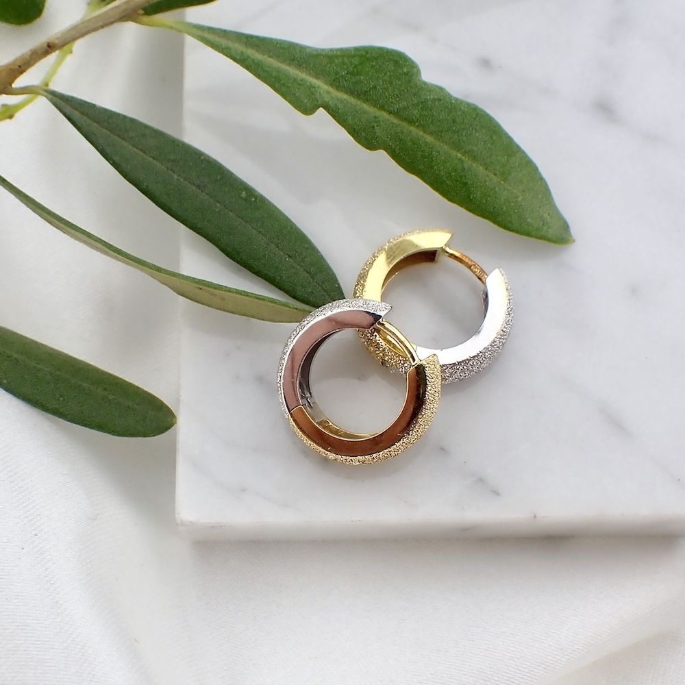 Two-tone gold diamond-cut earrings | Ø 17 mm