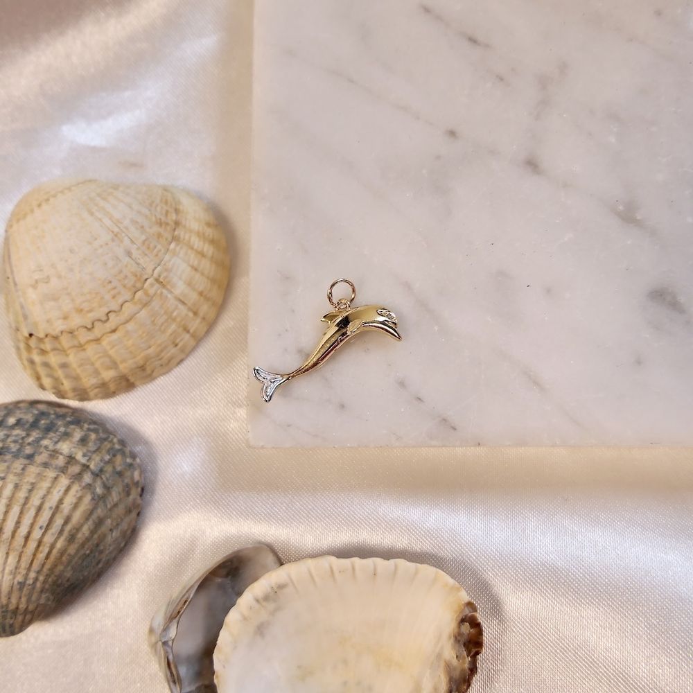 Two-tone gold dolphin pendant with diamond; 0.005 ct.