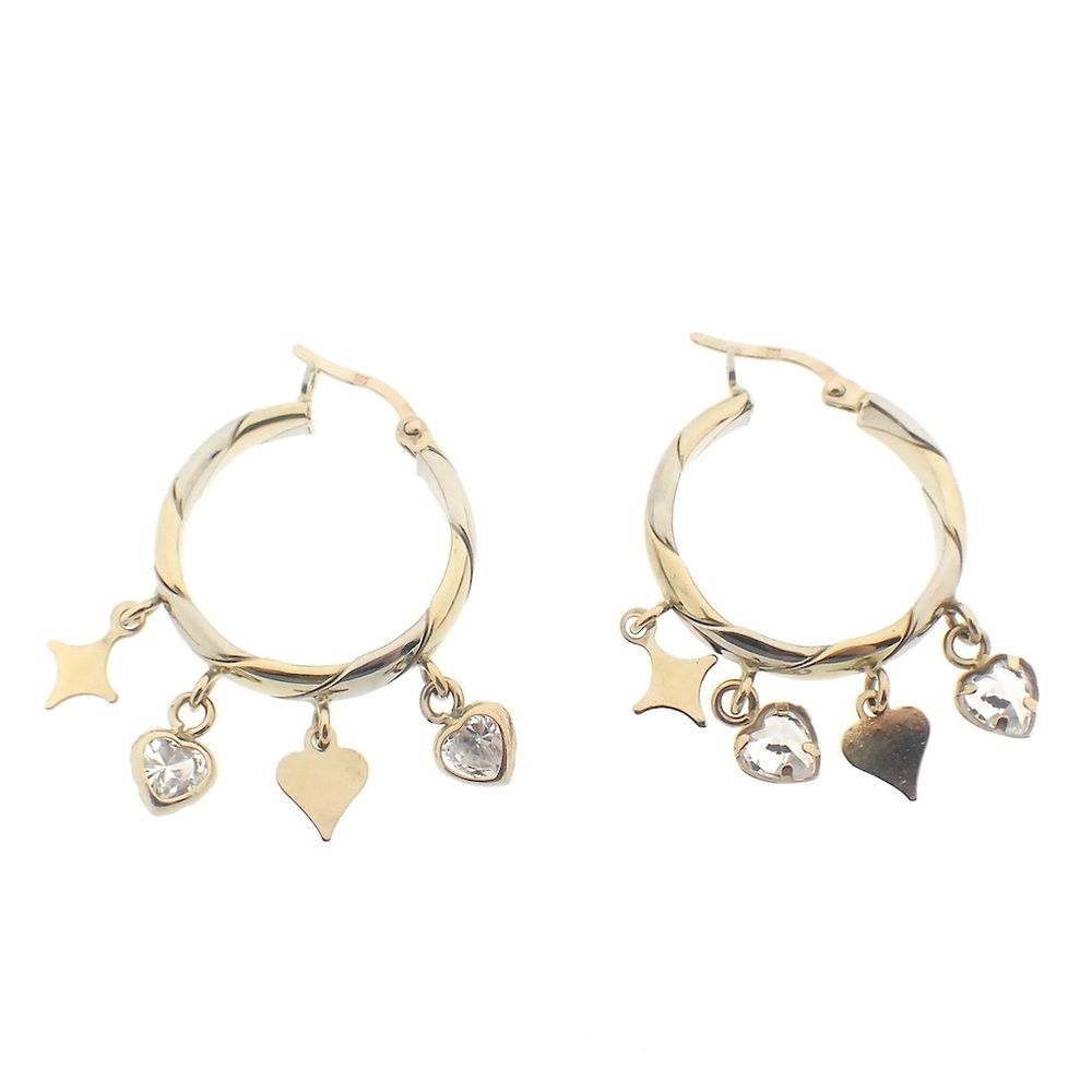 Two-tone gold earrings with charms and zirconia | Ø 23.0 mm