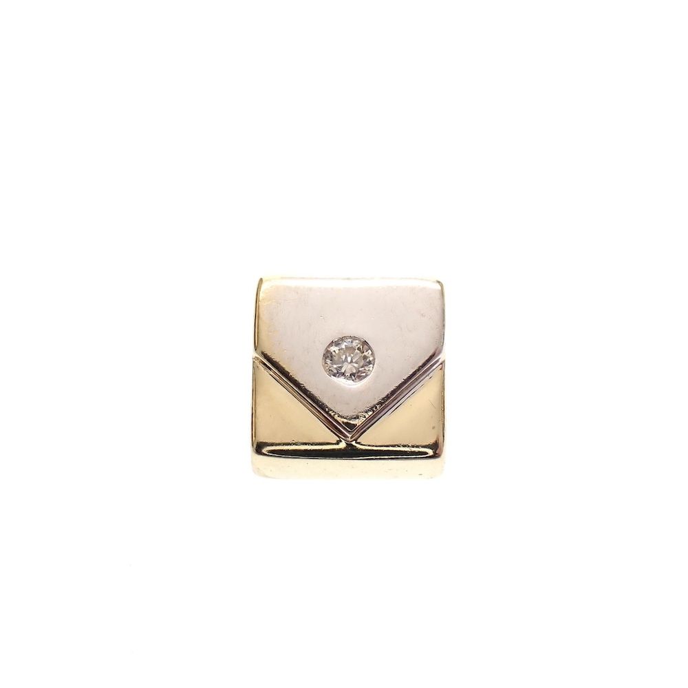 Two-tone gold envelope pendant with 0.04 ct diamond.