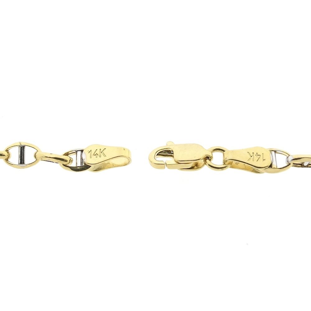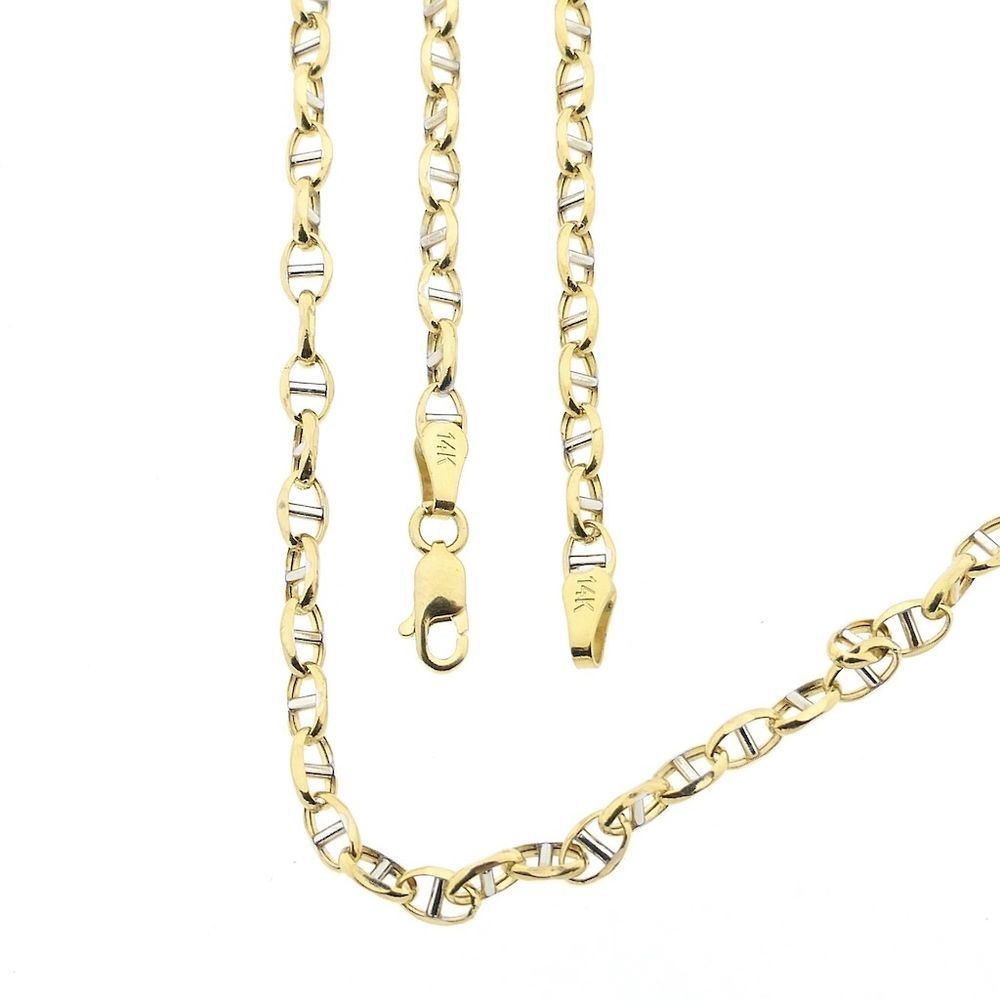 Two-tone gold necklace made with decorative links. This timeless necklace can be worn without a pendant or combined with multiple necklaces. A beautiful piece of jewelry for the neck from the brand 'Midas'. The necklace is crafted from 14-karat white and yellow gold (585/1000).
