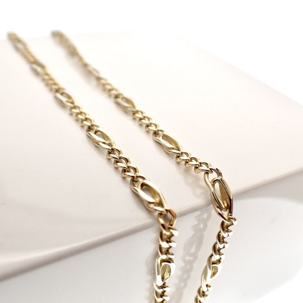 Two-tone gold Figaro link chain. The links are made of yellow and white gold. The chain can be worn by both men and women. A beautiful necklace crafted from 14-karat yellow and white gold (585/1000).